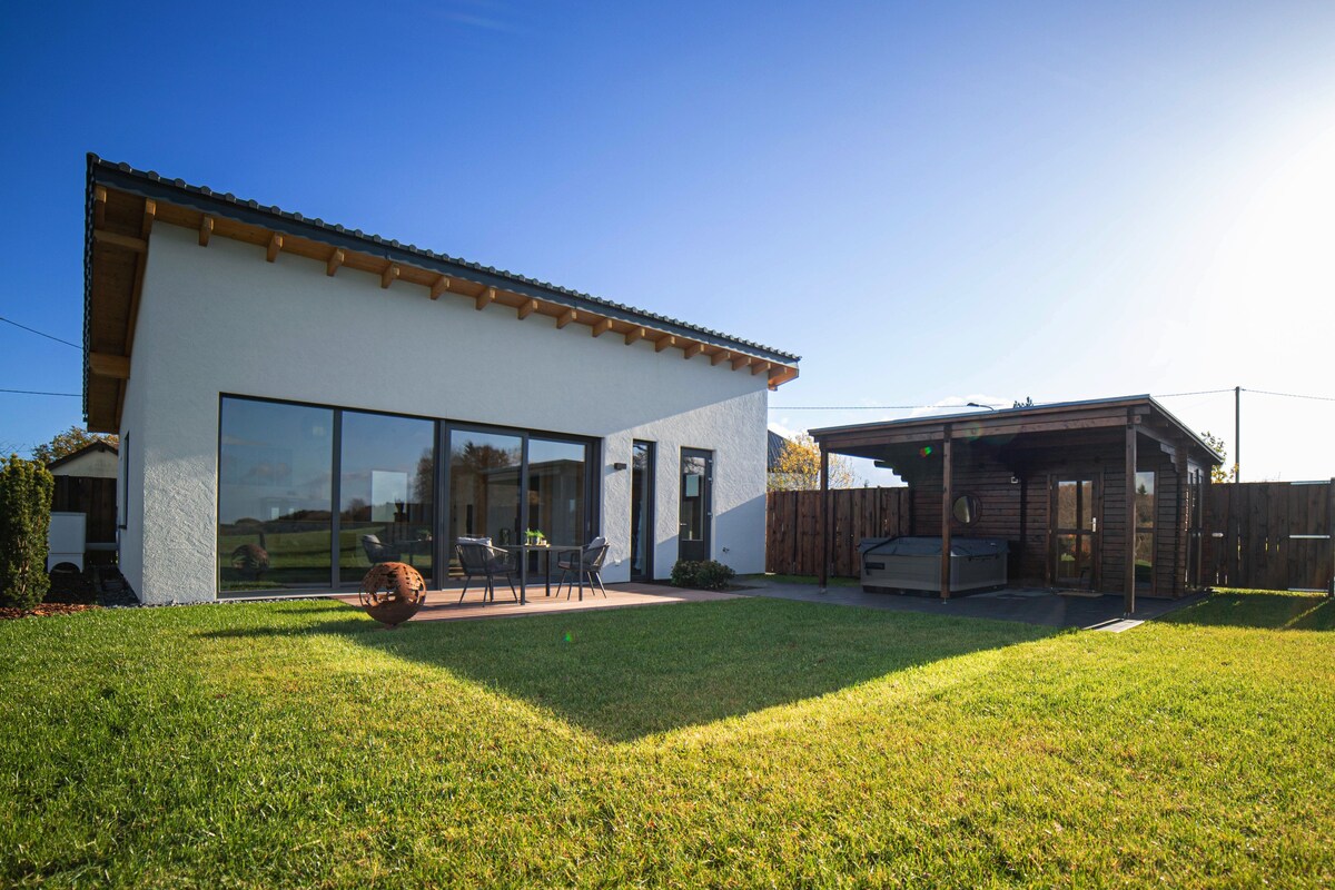 → 132 Quadratmeter groß → Wellnessoase → Whirlpool für 4 Personen → Sauna → Hot Tub → Smart-TV im Wellnessbereich → Regendusche für zwei Personen → Saunaliege Wippfunktion → Bademäntel → Voll ausgestattete Küche → Gasgrill → Minibar & Kühlschrank → Check-In via Smart-Lock → Digitaler Reiseführer → Familienfreundlich → Kinderbett & Hochstuhl (Anfrage)