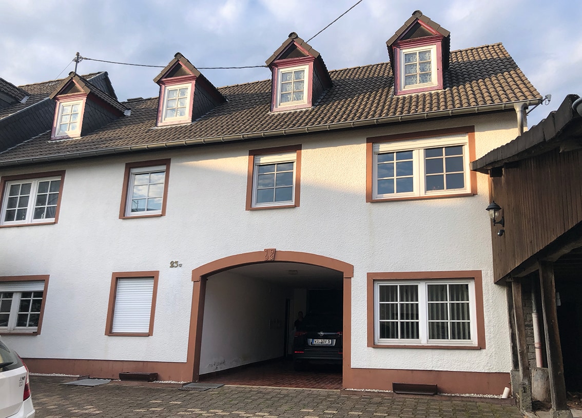 Traumhafte Dachwohnung (130 qm) im Herzen der Vulkaneifel, in Mehren/Daun. Idealer Standort für Wanderer/Radfahrer die Maare und den Eifelsteig zu entdecken, eine Oase zum Entspannen. Großzügiger Wohn-Essbereich führt in den herrlichen Wintergarten mit Kaminofen und auf die Terrasse mit bequemen Gartenmöbeln. Blick über Ort und Tal. Voll ausgestattete Küche. Beide Schlafzimmer mit Doppelbetten (160cm). Vom größeren Schlafzimmer Zugang zur Terrasse. Parken direkt am Haus. Kinder willkommen.