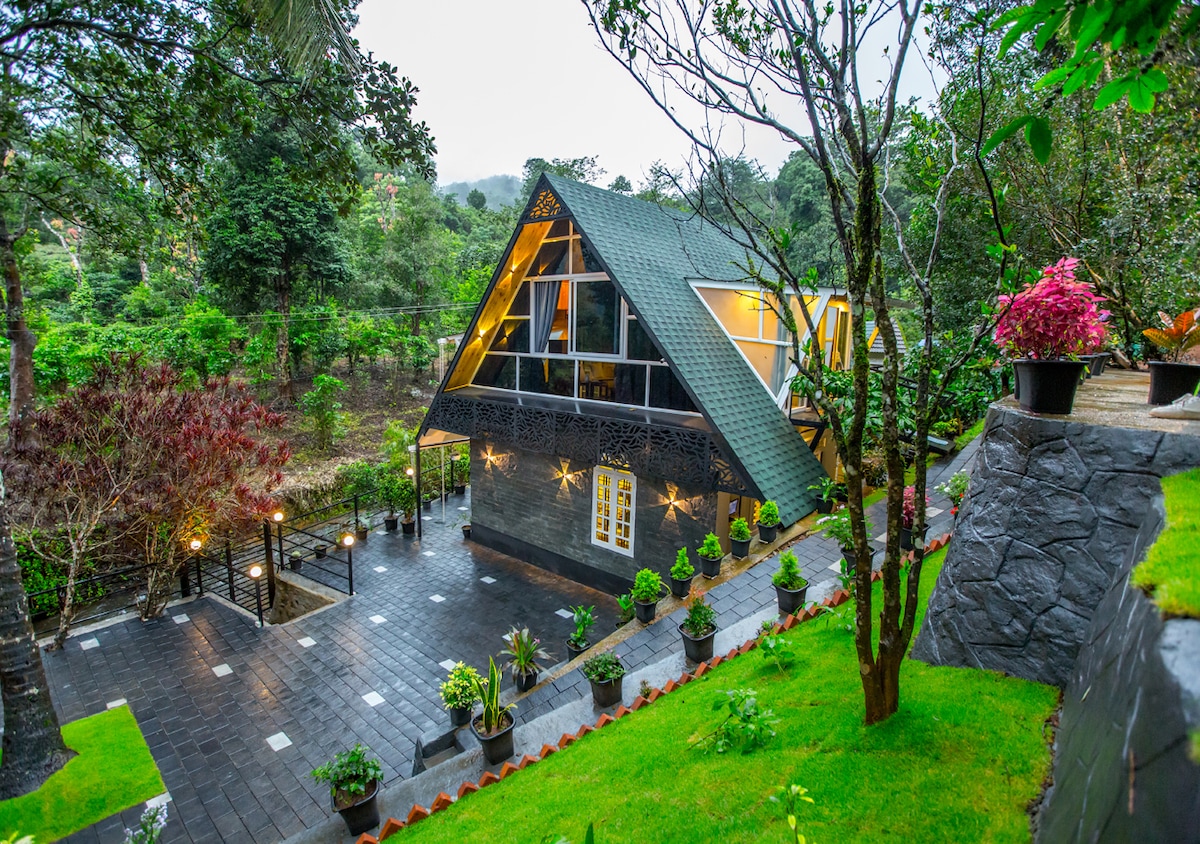 The Cove Lakkidi is a lovely A-framed villa located in Lakkidi, Wayanad. This beautiful A Frame Villa located near Chain Tree Temple, so close to ghat roads. It is in such a gorgeous setting that it provides tranquillity and peace to everyone's thoughts. This A Frame Villa in Wayanad has four bedrooms with all modern amenities and small balconies with magnificent views.