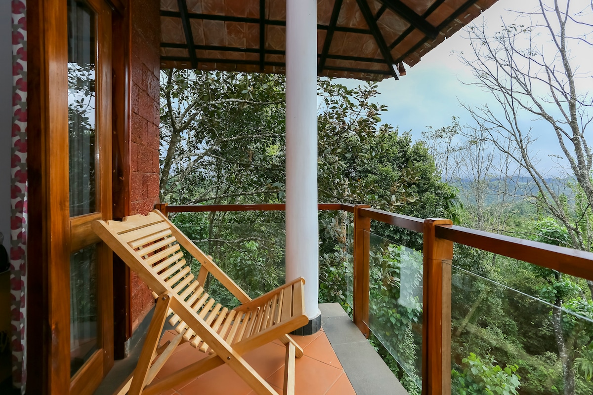 Tucked amidst the lush rainforests of Vythiri, Wayanad, the Hideaway Chalet at Flora Vythiri Resort offers a serene escape into nature. Perched on stilts and surrounded by towering trees, this private forest chalet features elegant interiors, a cozy outdoor deck, and floor-to-ceiling windows that let the wilderness in. Whether you're seeking a romantic retreat or a peaceful solo getaway, this is your sanctuary in the woods. Only a 2-hour scenic drive from Calicut International Airport.