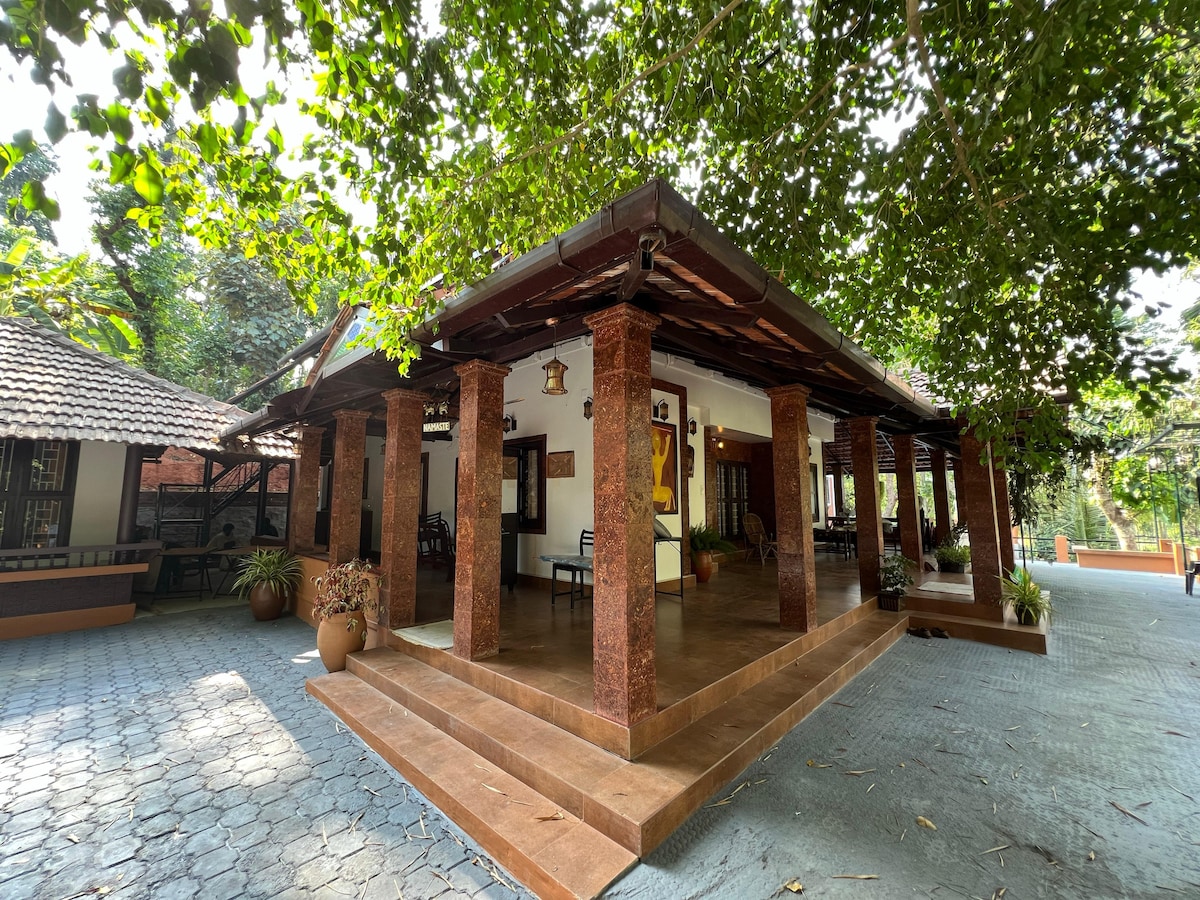 Our team applied design thinking principles to create this contemporary cottage. Use of Laterite stones, terracotta tiles, roof tiles at the entrance, artfully designed full length windows that overlooks the paddy fields and the rivulet Narsi from a height are part of the mindful design. The cottage is placed on a moderately sloped terrain and offers a stunning view. The premium cottage is ideal for a luxurious family getaway or a romantic retreat .The place is surrounded by natures bounty.