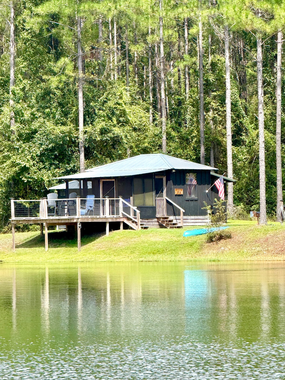 Beautiful 3 bedroom, 2 bath cabin on 30 acre farm and 10 acre lake! Come enjoy a weekend, week or longer and get away from it all! Rocking chairs and a Jon Boat are ready for your arrival and the fish are always biting. Great place for hunters during the fall or visitors to the Okefenokee.
