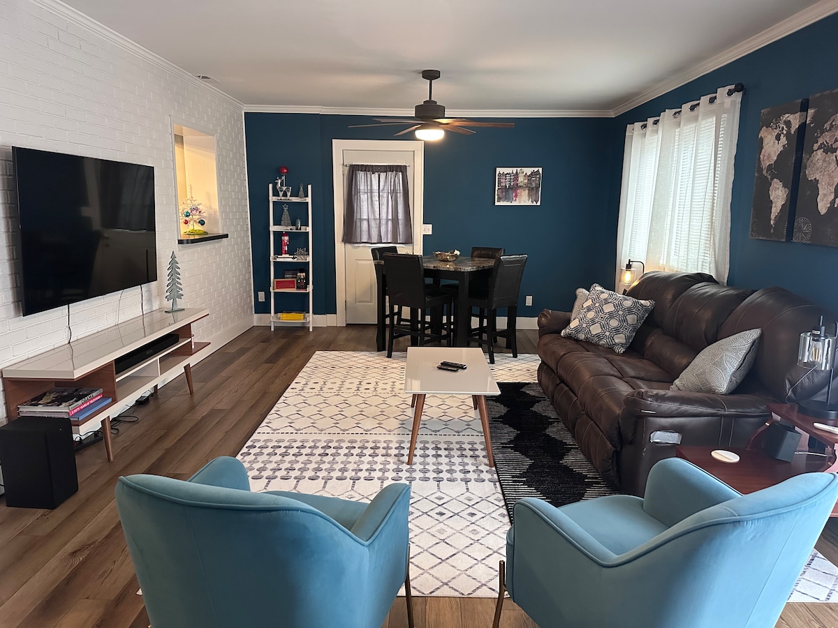 Welcome to our charming 1970’s style bungalow, The Beverly, a time capsule of retro allure perfect for your getaway! Nestled in a quiet neighborhood, this cozy two bedroom home boasts vintage wallpaper and furnishings, and plush carpets that transport you to the stylish era of the ‘70s. Enjoy the fully equipped kitchen or just kick back in the comfy living room. With its eclectic decor and nostalgic ambiance, our bungalow offers a unique stay for those seeking a blast from the past. Book now!