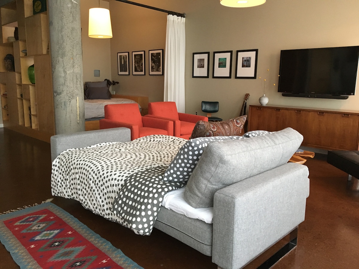 Zen Den Downtown Loft,配备加大双人床和按摩床