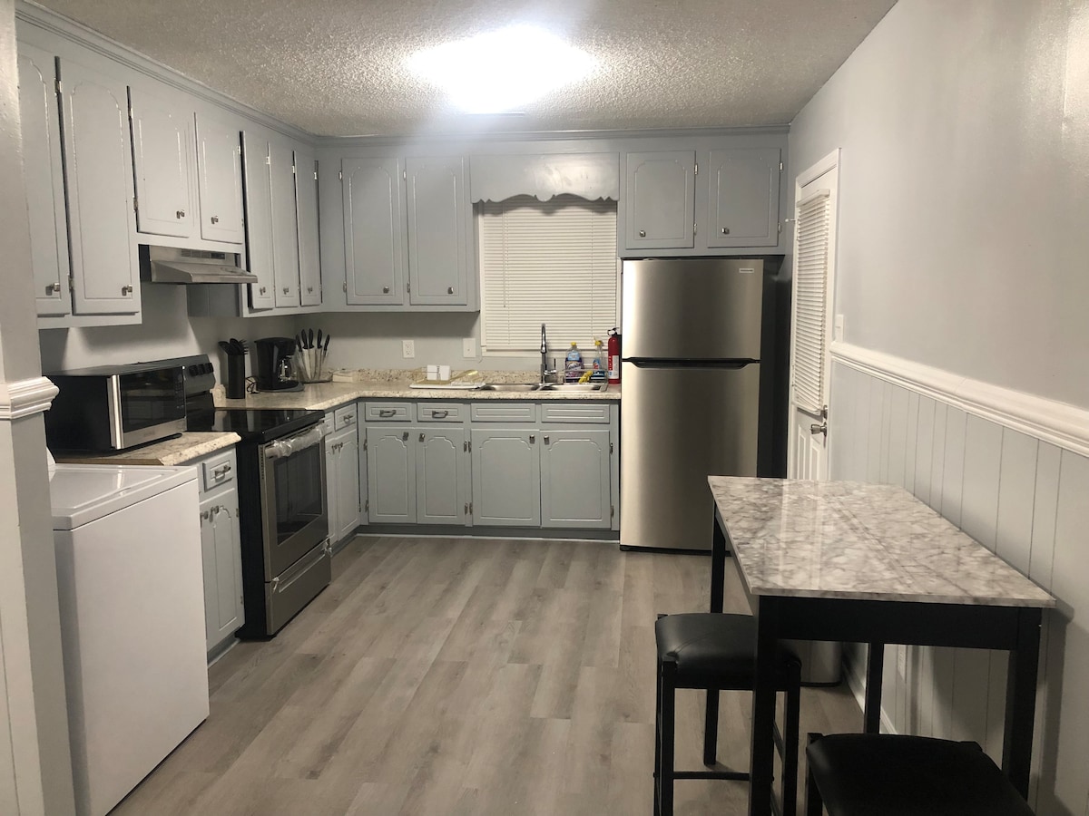 Enjoy your stay in Mount Olive in this cozy, newly remodeled home! Every aspect of the interior has been completely renovated and features new appliances and fixtures throughout the house. This quiet neighborhood is within walking distance to the University of Mount Olive campus and a short drive to the city of Goldsboro. This home is suited for short or long term stays with Wifi, washer/dryer, and a fully equipped kitchen. Parking is abundant with room for up to 3 vehicles.