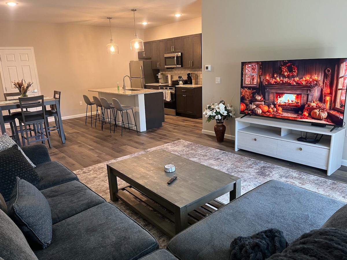 Discover luxury in the heart of Palmyra! 🏡 Centrally located, steps from the Erie Canal, this penthouse offers private parking, a plush bedroom with a 50-inch smart TV, and a fully equipped kitchen. Relax in the stylish living room with a 60-inch smart TV and a queen-sized pull-out mattress. Immaculate bathroom and convenient amenities make it your perfect getaway. We love hosting members of the LDS Church! Book now for a charming blend of history and elegance🌟🛌🍳