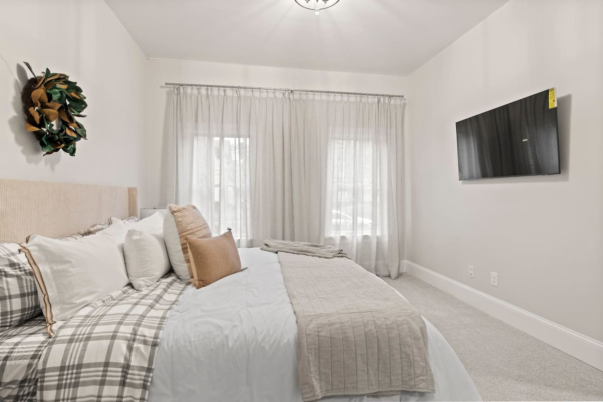 Discover your dream Palmyra retreat! Our historic 20th-century home features 2 king bedrooms, smart TVs, and a gourmet kitchen with quartz countertops and stainless steel appliances. Enjoy impeccable tile work, private parking, free Wi-Fi, and a brand-new washer and dryer for added convenience. Relax in the chic living room with a 60-inch smart TV. We love hosting members of the LDS church and are delighted to offer a perfect blend of history and luxury in this charming village oasis. 🏡✨🌟