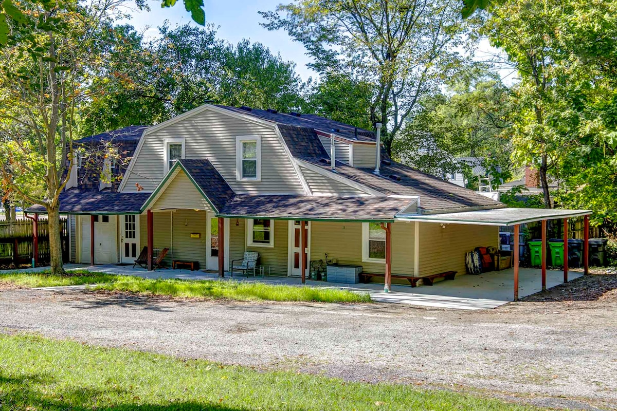 Welcome to your perfect home away from home, just steps from the College of Wooster! This spacious, newly renovated 4BR/3BA retreat sleeps 8 and blends modern comfort with convenience. Enjoy hardwood floors, open-concept living, a fully stocked kitchen, and a finished basement with a wet bar and fitness area. Relax on the back deck overlooking a fenced yard or unwind on the cozy front porch. Walk to campus events, downtown dining, and shopping. Garage & driveway parking included!