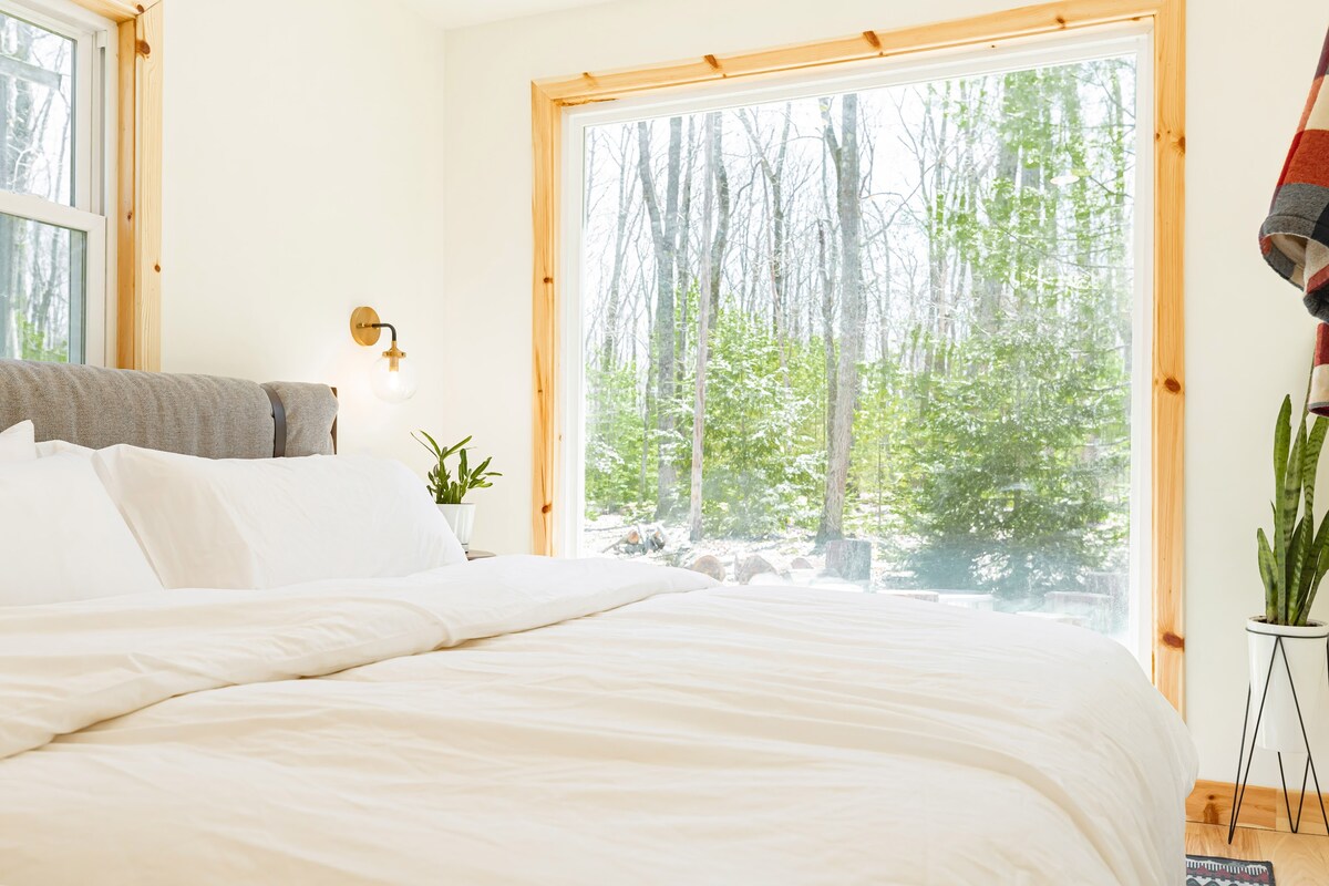 A modern getaway in the heart of the Pocono Mountains! The Rex Hotel is a 10 unit modern hotel right on the border of Promised Land State Park. Our 10 guest rooms range from a mix of queen and king size rooms, as well as cabins with connecting bunk rooms, all of which are outfitted with en-suite bathrooms and well-appointed workspaces.