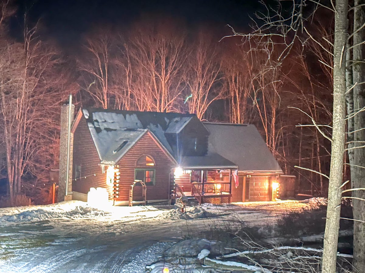 滑雪场附近的小木屋,带私人热水浴缸