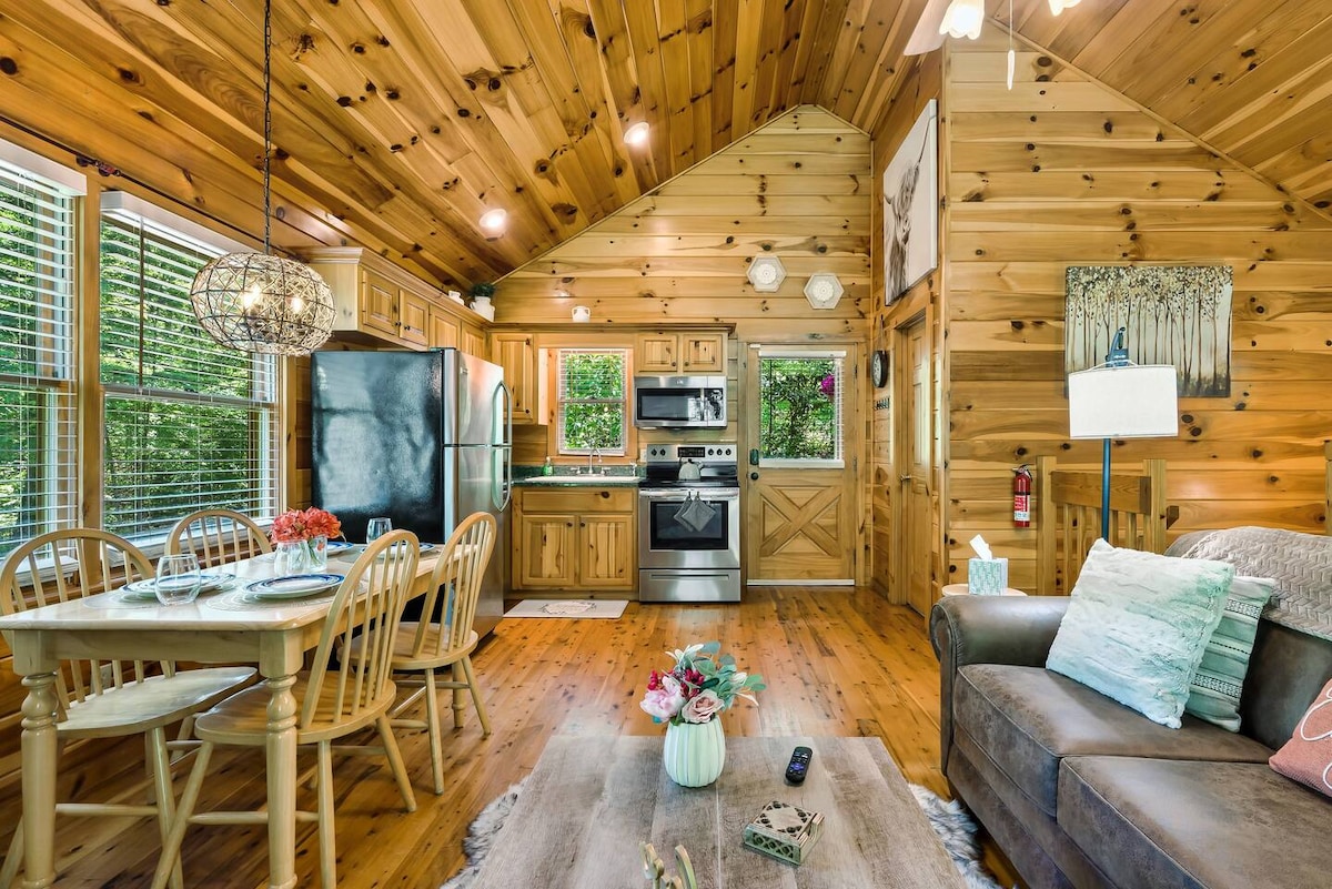 Honeymoon cabin! HotTub, Firepit, King Bed, Pets!