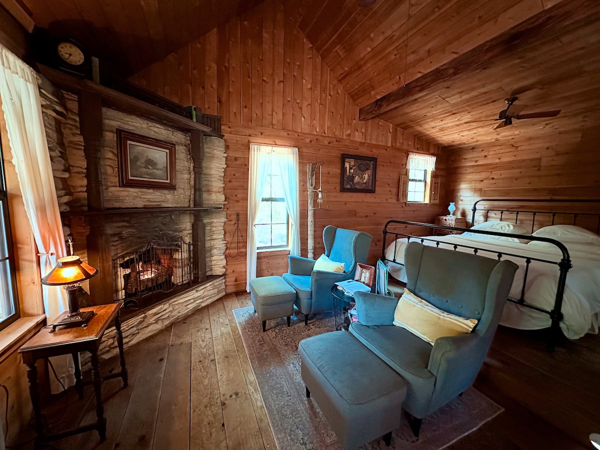 Embrace the bucolic lifestyle of this quaint cabin that’s adjacent to a pasture and pond. When weather permits, we have a fire pit you may use to make S’mores right in front of your cabin. We welcome you here to enjoy rest during your travels or maybe need a quiet place that’s near the Hospital. We are 2 miles from historic downtown & close to parks & lakes. Also, I will prepare breakfast for you and deliver to your door! (Times for breakfast delivery are from 8:30 to 10am, just let me know:)