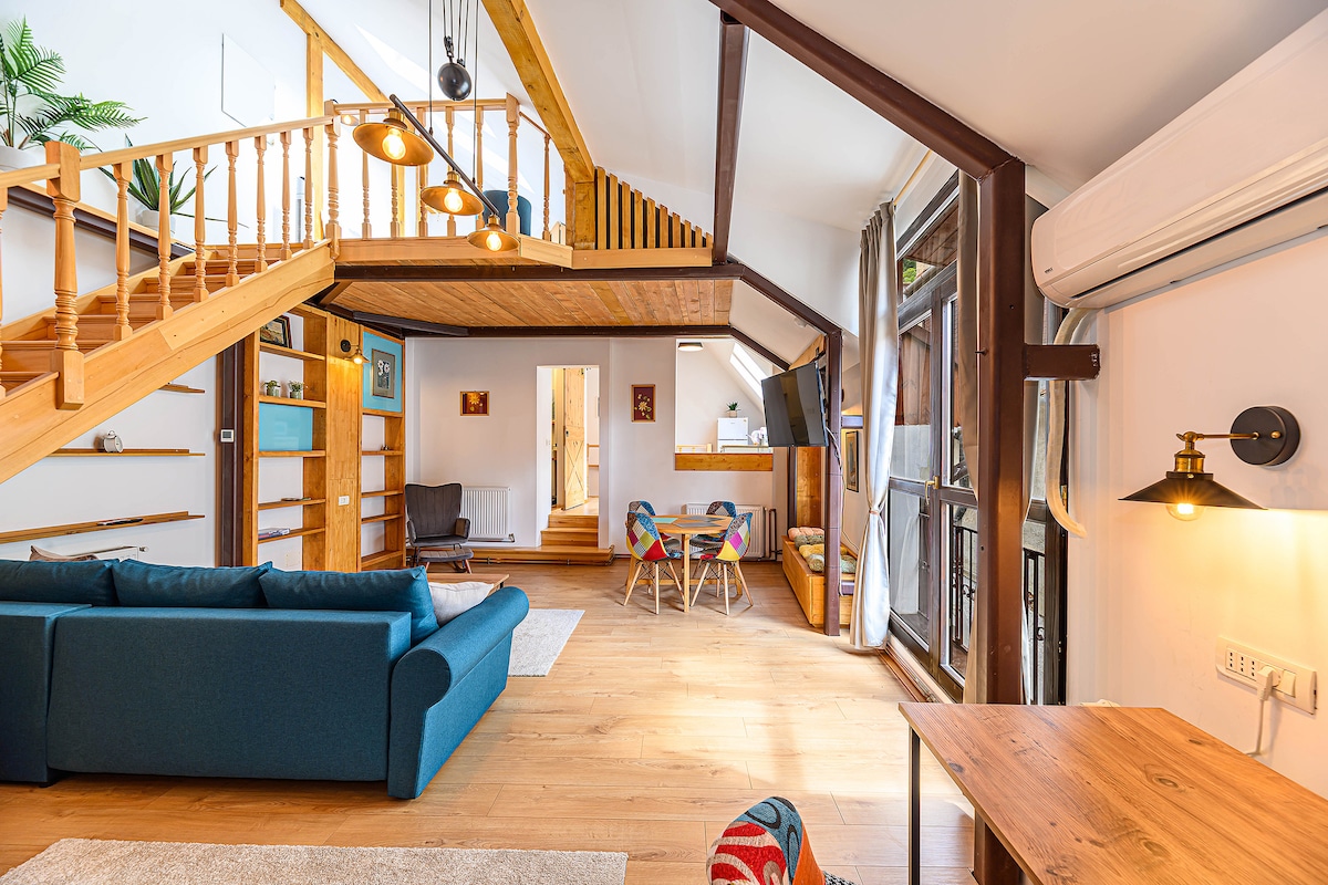 Petreceți-vă sejurul într-un apartament de tip loft, modern, ultracentral, situat fix în inima Brașovului. Acest spațiu elegant cu pereți înalți oferă confort și stil, perfect pentru o ședere relaxantă. Dotat cu toate facilitățile moderne, și lumină naturală din abundență, vei fi la doar câțiva pași de principalele atracții turistice din Centrul Brașovului: restaurante, cafenele, muzee. Ideal pentru cupluri sau călători de afaceri, pentru o experiență de neuitat la Orașul de la poalele Tâmpei.