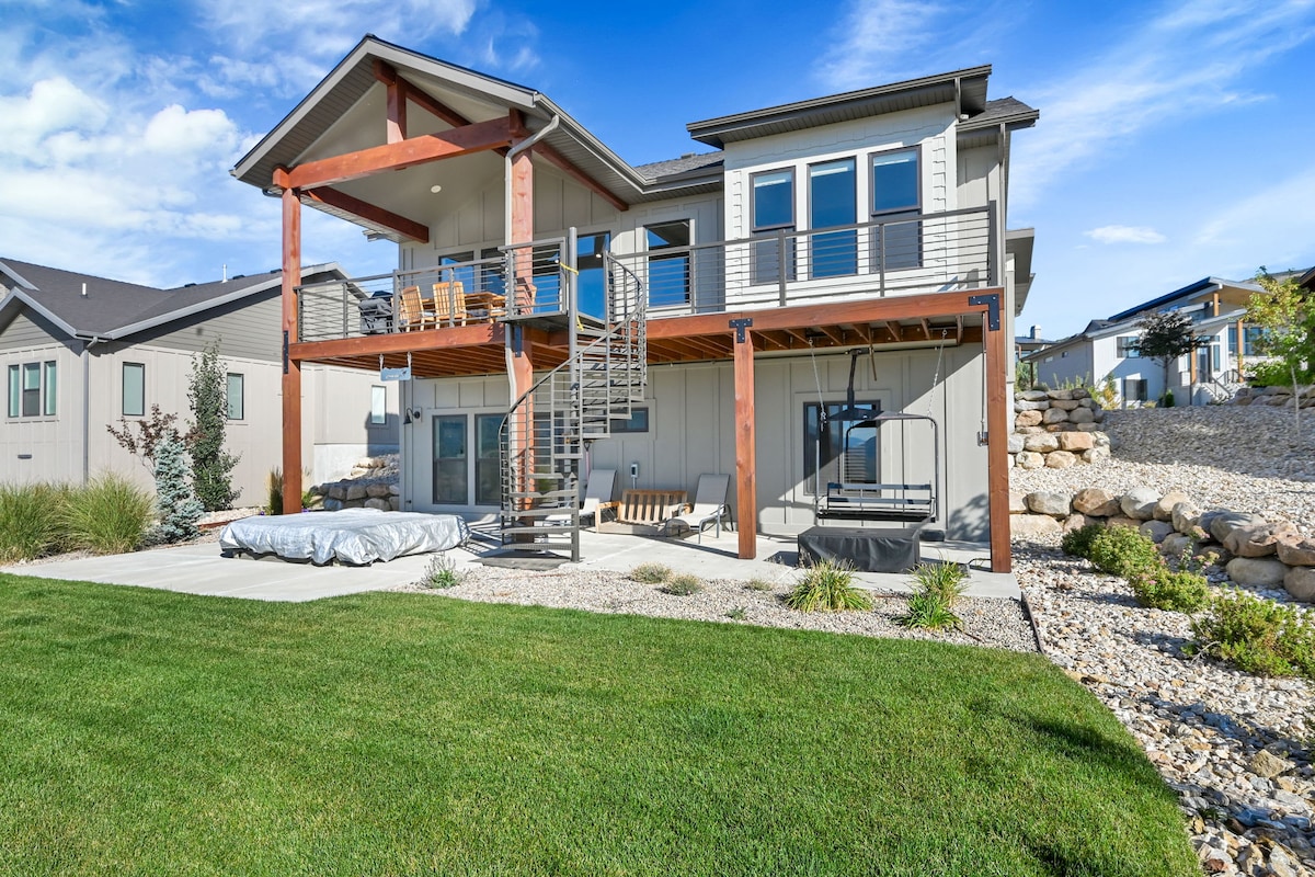 This Huntsville vacation rental on the edge of Pineview Reservoir gives you year-round access to the beauty and adventure waiting in Utah’s Wasatch Mountains. This modern and spacious 4-bedroom, 4.5-bathroom townhome features a sleek interior, mountain views from the covered balcony, and proximity to 4 different ski resorts. Spend a day on the slopes at Powder Mountain or Snowbasin Resort in the winter, relax in the sand at Windsurfer Beach in the summer, or unwind at home and play board games.