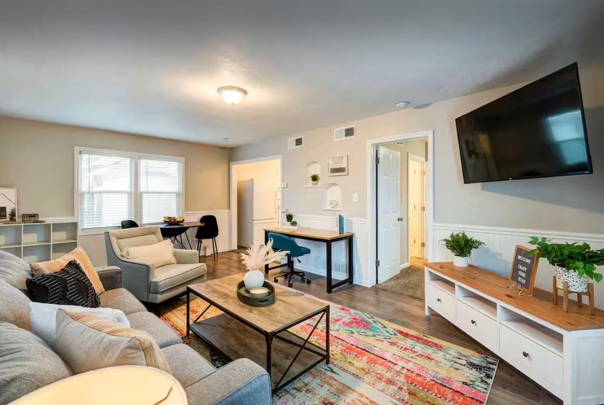Kick back and relax in this calm, stylish space. Central to Ogden, town is approx. 5 min away, and resorts are within 30-45 minutes. Nestled in a quiet and safe neighborhood, this place has all you need for your travel stay; featuring a kitchenette, washer/dryer, bathroom, queen murphy bed, dining table, sitting area, work desk, WIFI, Cable, and free parking close to the private entry door. No cleaning fees! Also, guests have access to an outdoor enclosure for traveling pets who need a stretch.