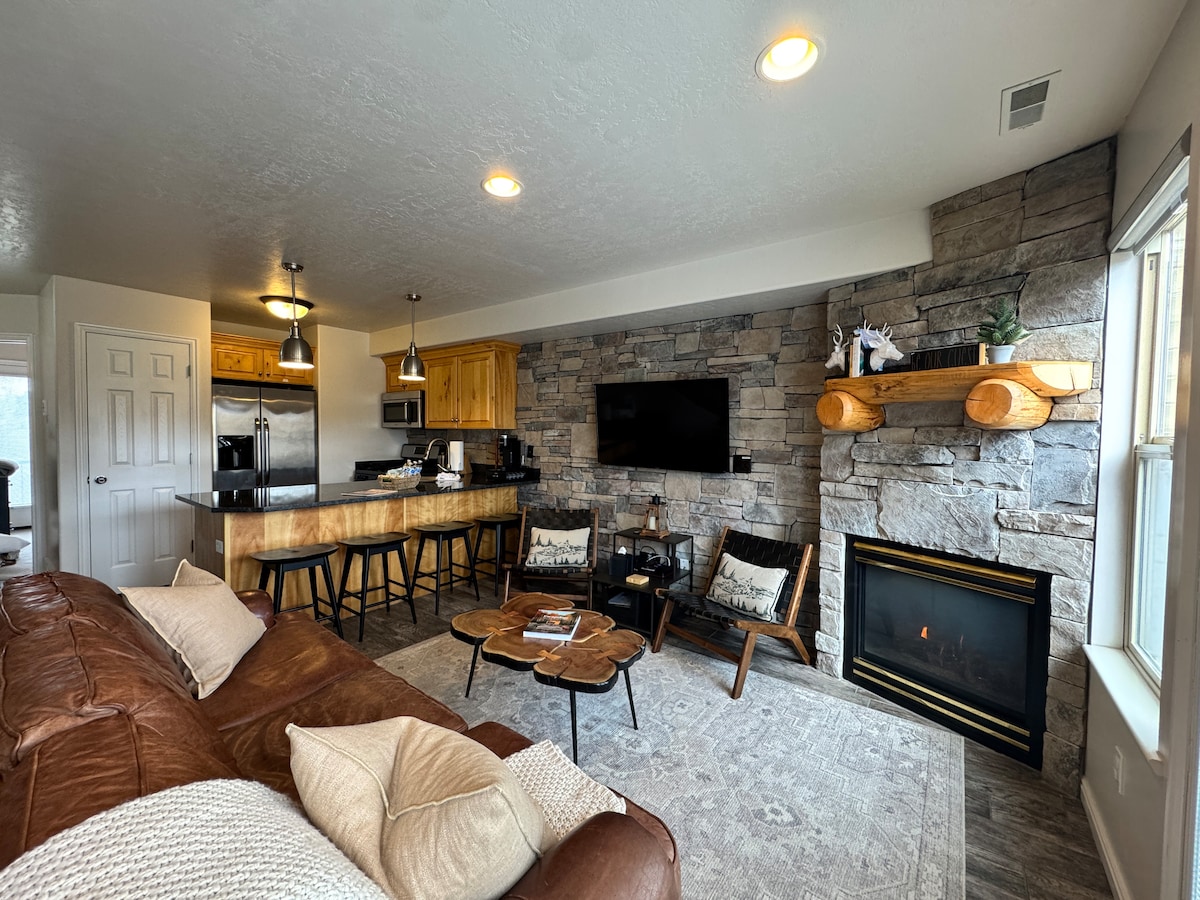 Welcome to your mountain retreat — a haven of comfort, convenience, and pristine cleanliness designed for a 5-star experience. Imagine yourself unwinding beside the cozy gas fireplace, a cup of freshly brewed coffee from the Keurig in hand, as you plan your next alpine adventure. Inside, enjoy modern comforts; smart TVs, complimentary Wi-Fi, and thoughtful touches throughout. Step outside onto one of two private balconies, each offering stunning views of the surrounding peaks and landscape.