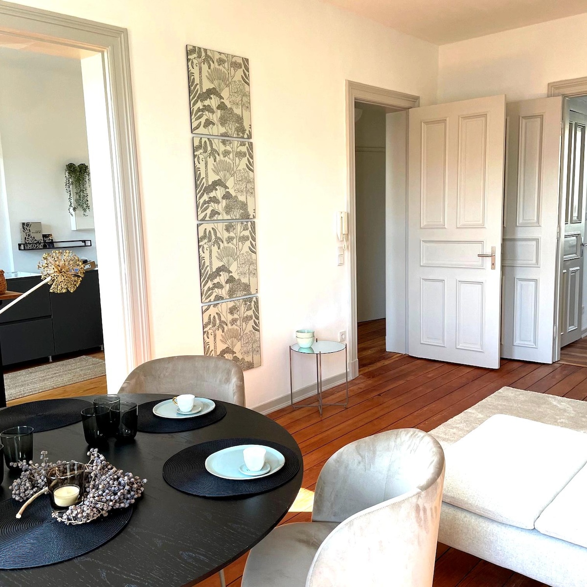 Our guest flat, newly furnished at the beginning of 2021, is located in the basement of our small Wilhelminian-style villa - in the centre of beautiful Blankenese, in a side street behind the market square. It offers plenty of space for two and is the ideal starting point for a stroll in the "village", for walks in the Treppenviertel, the nearby parks and along the Elbe or for a visit to the surrounding restaurants and cafés.