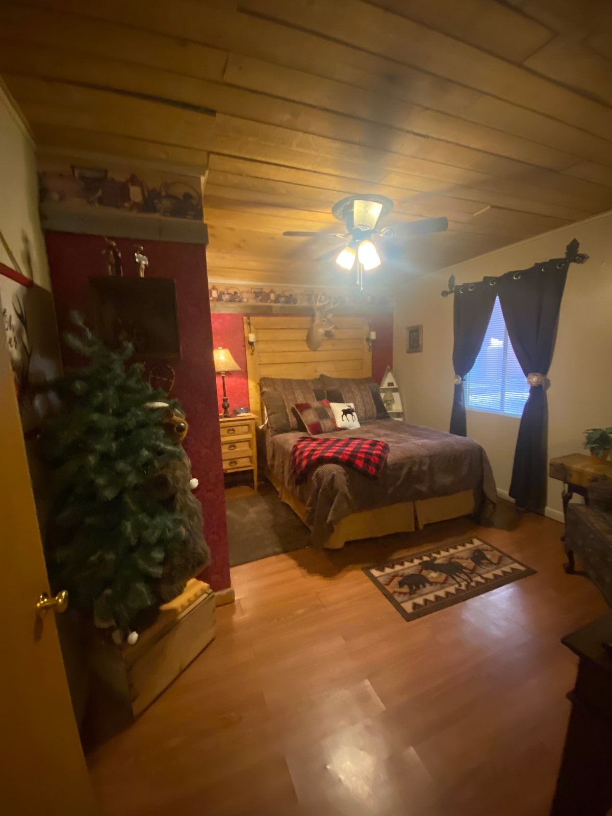 Step back into a simpler place and time! Our cabin is located in a quiet neighborhood on a quarter acre lot. Remodeled for comfort and enjoyment, but still has that rustic charm to give you the perfect mountain getaway! Get a great night’s sleep on our King Serta Perfect Sleeper. While additional guests choose from the XL memory foam twin or sofa bed. Our kitchen is fully stocked for you to cook your own meals, and we have plenty of games to keep you busy!