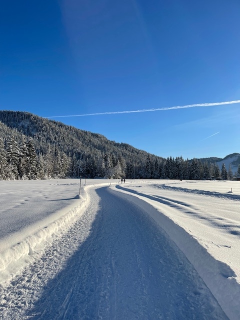 Holiday apartment with private entrance door, kitchen, bathroom and terrace. The cross-country slope is only a couple of meters away. The apartment is situated on the ground floor of our house, in which we live upstairs ourselves. Your car may have a little rest during your stay, since public transport is included. Ideal for: couples, sporty people, families with 1 child. Visitor's tax of €3,50/ Person/ night is not included and will be charged upon arrival.