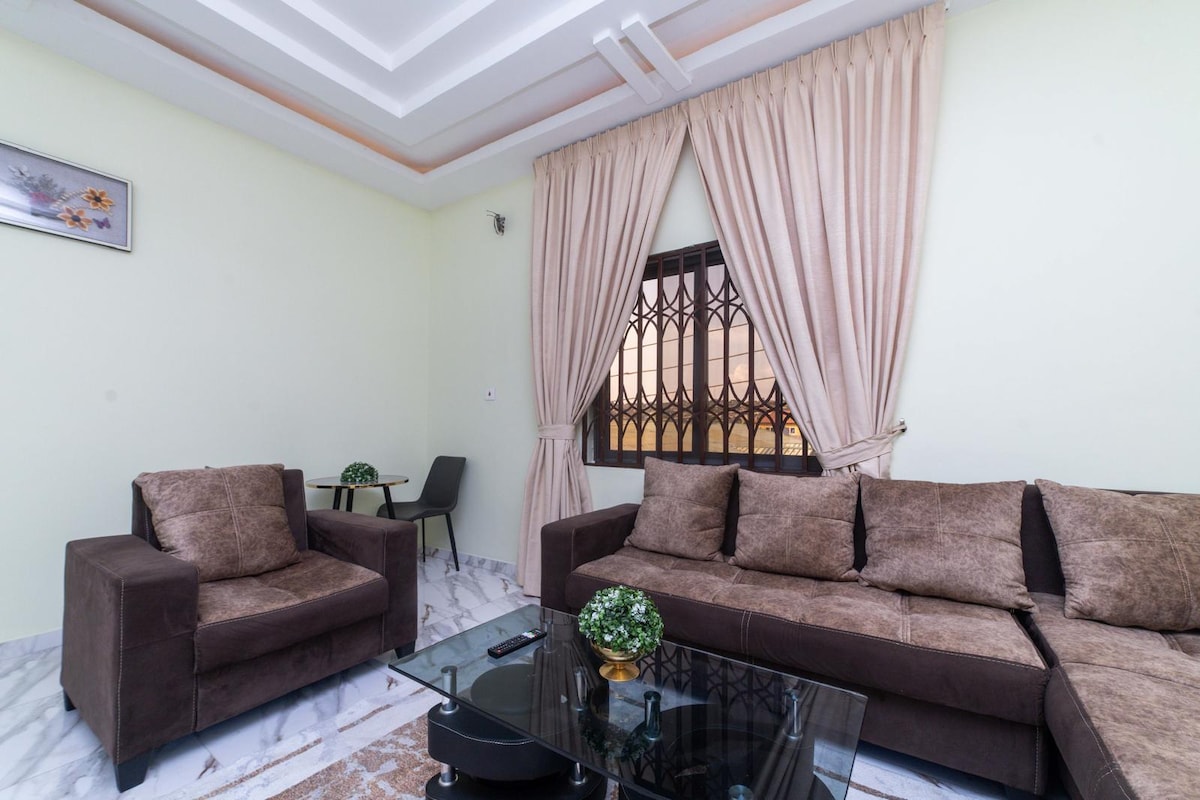 Relax with the entire family at this peaceful and secured apartment. 1-bedroom apartment that can host 2 guests. Check out our other listing if you want to book for 3 or more guests. The location is easily accessible and close to West Hills Mall, Shoprite, China Mall, Melcom shopping centre, Kokrobite beach and Bojo Beach. Relax and enjoy your stay feeling at home away from home.