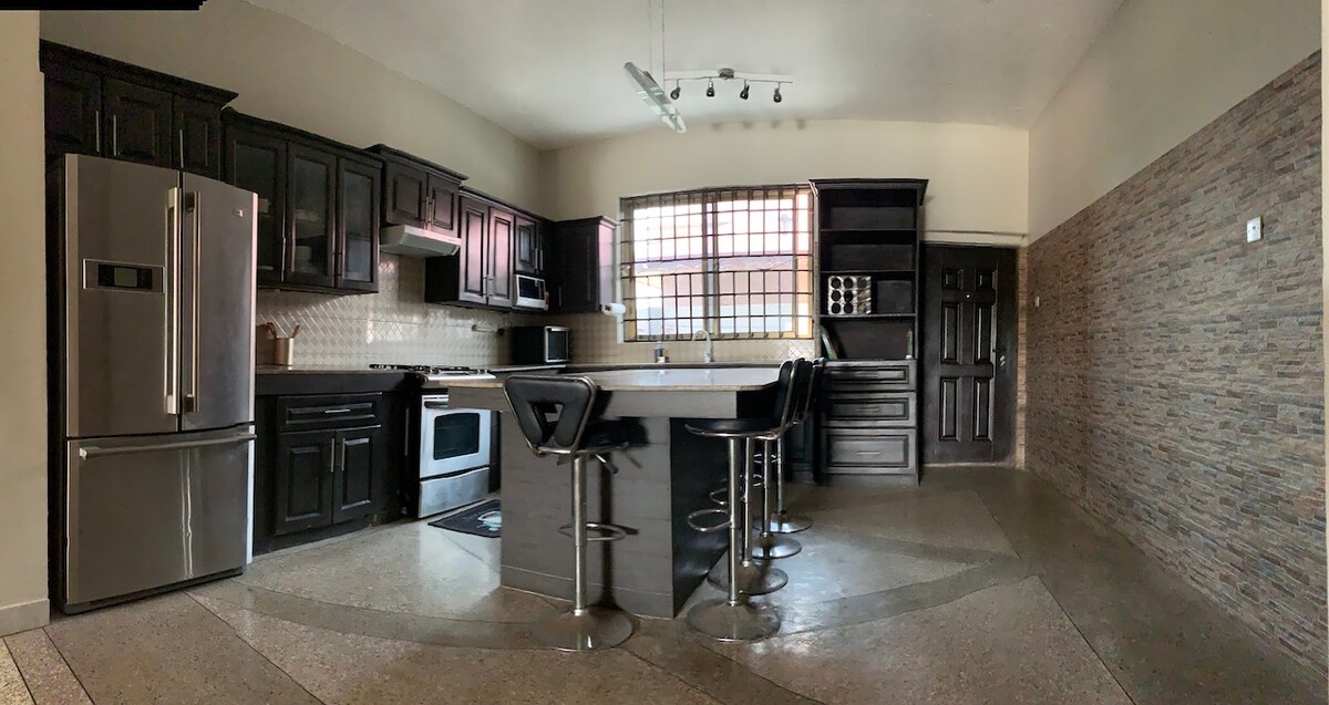 Located in the suburbs of Galilea-Amanfro, Greater Accra. 2 miles from Galilea Market, 5 miles from West Hills Mall, and 5 miles from the beach. The 5,600 sq. ft home is gorgeous and comfortable for your stay, you will occupy the first floor of 2,500 sq.ft with 11-foot-high ceiling, an open concept floor plan, fully equipped gourmet granite tops kitchen, 3 en-suite bedrooms, washer, dryer, water heaters and air conditioners for all the rooms, access to gym, basketball, bicycles, barbecue area.
