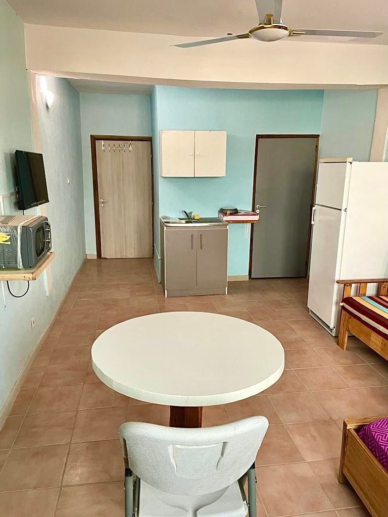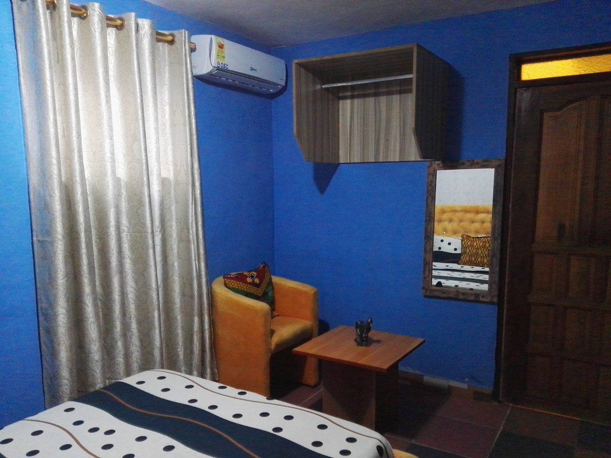 This well-furnished executive one-bedroom apartment with a big hall is the right choice for you. This beautifully furnished apartment comes with a king-size bed, installed water heaters, sofas, satellite tv channels, a work desk, a refrigerator, air conditioning, kicthen, 24/7 room cleaning services, 24/7 free wifi etc. Located at weija, Accra, this apartment comes with a spacious compound where you can host your events. It is perfect for couple or single. Reserve an partment with us now:)