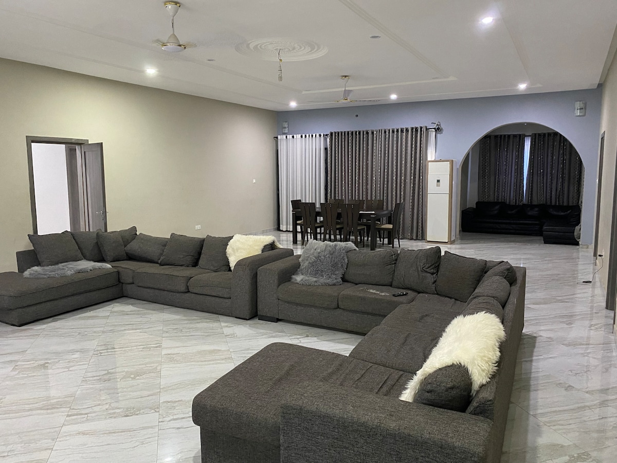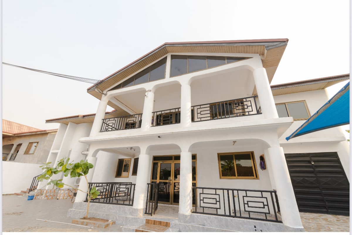 Brilliant home with 5 very comfortable bedrooms; 2queen & 3full beds & 5bathrooms. Lots of space and privacy. A tranquil atmosphere to unwind after a day of exploring. Guests can stay cool with air conditioning and convenience enjoying the rooftop. If traveling with family or friends, this excellent home provides a relaxing retreat. Feel at home while you're traveling Ghana. Minutes drive from the Kokrobite Beach & West Hills Mall and the right place to stay if visiting the Cape Coast Castle.