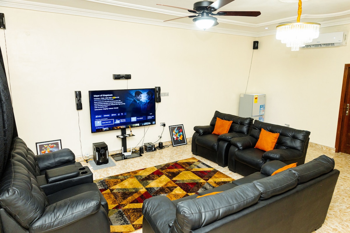 Forget your worries in this spacious and serene space.Located in a very popular and central location in Accra, Gbawe. We offer you extreme value for money with this ultra modern home where you can get away with friends and family for both work and relaxation. Only about 20min drive to West Hills Mall and about 30 min drive from the Airport. The road leading to our home is a bit buggy but the comfort that awaits you will make it worth it. Electric fence cable and 24/7 CCTV for extra security