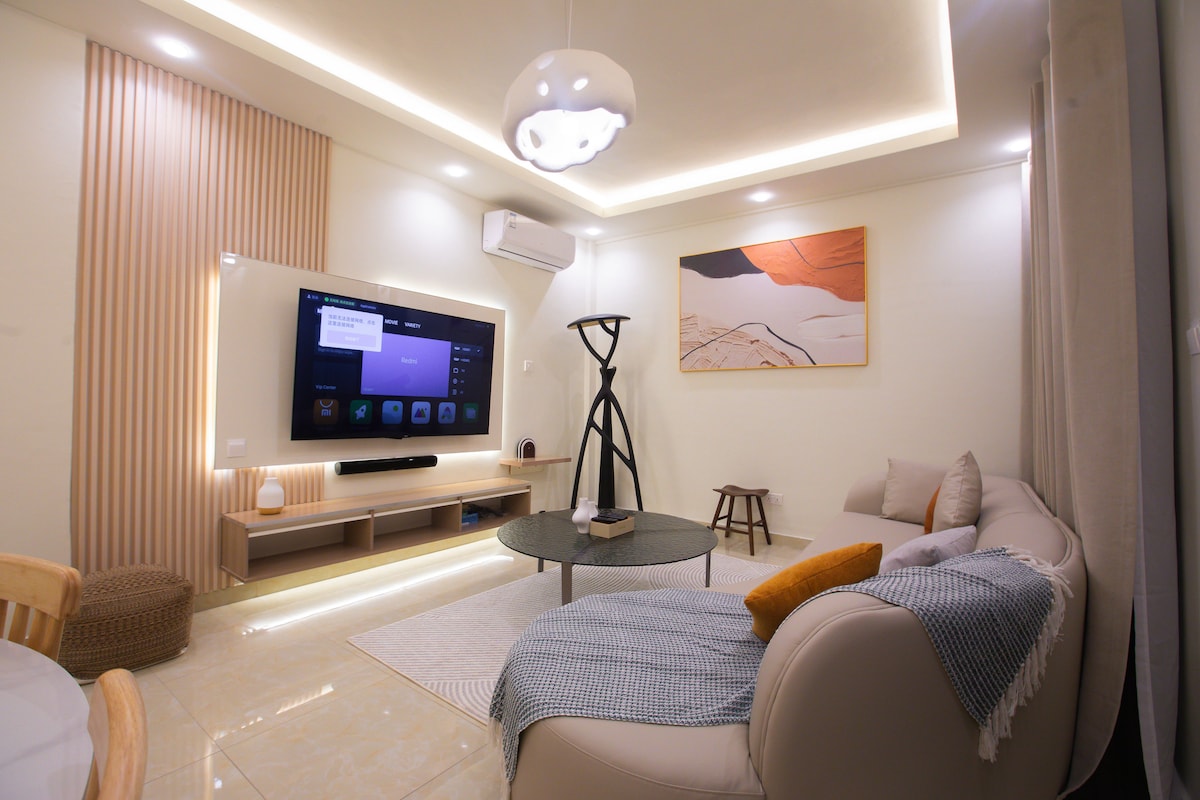 This private 2-bedroom apartment is situated on the left wing of a larger home. Each bedroom features a 2 beds,and guests have their own private bathroom. The living area includes a TV and air-conditioning for comfort. A shared kitchen is available for cooking simple meals. Guests can also enjoy secure parking, a calm outdoor setting with a fountain, and refreshing lake view.The apartment provides a quiet and modern stay ideal for relaxation, work trips, or weekend getaways.