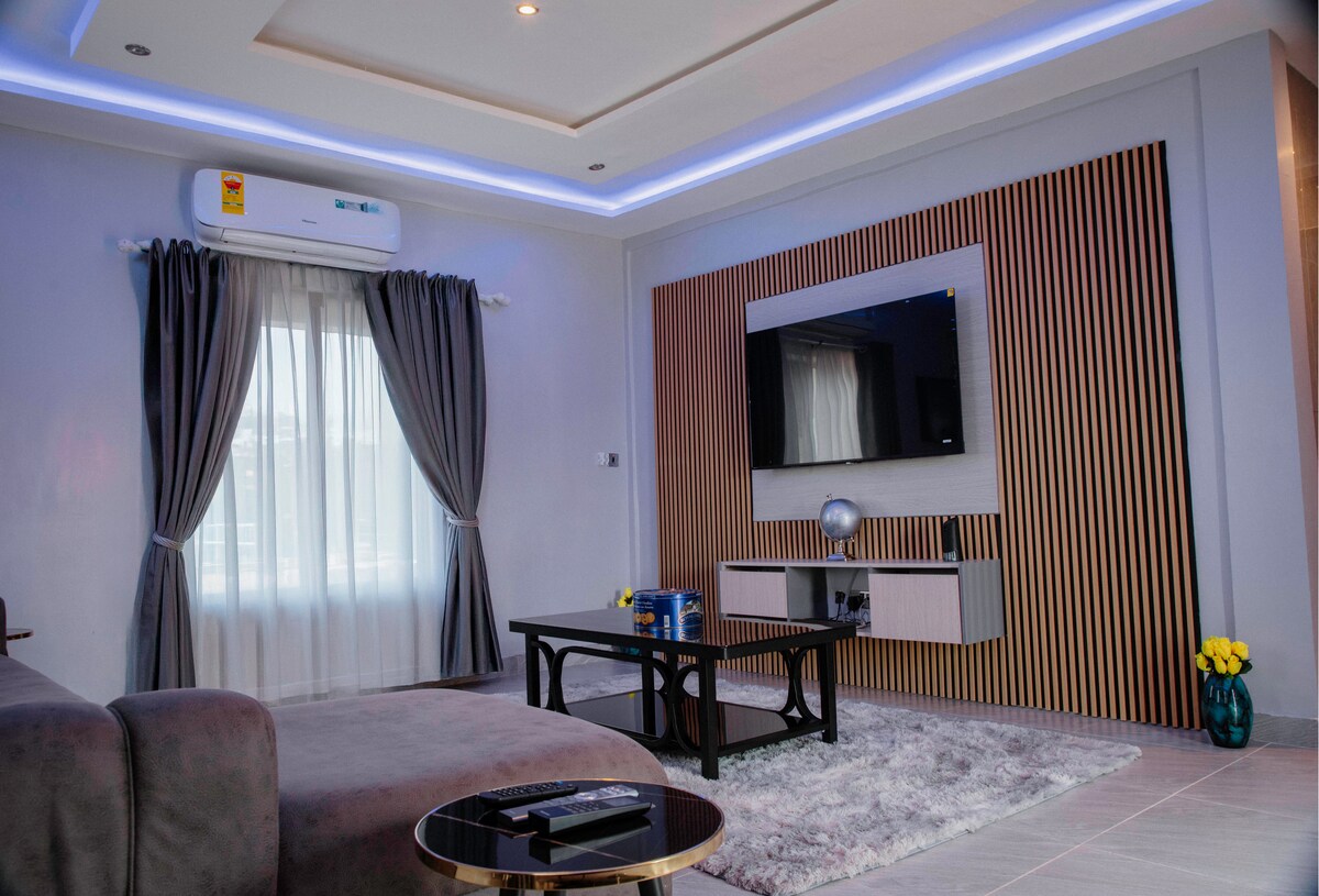 With one stop amenities it’s your complete staycation hub . Kick back and relax in this calm, stylish space. Silent and friendly environment for your peace of mind.. - 25mins away from the beach - 10mins away from the biggest mall in West Africa - Serene night view from Rooftop - 24/7 Security - Standby Genset - Paid Tv Channels (Dtsv) - Guide available at request