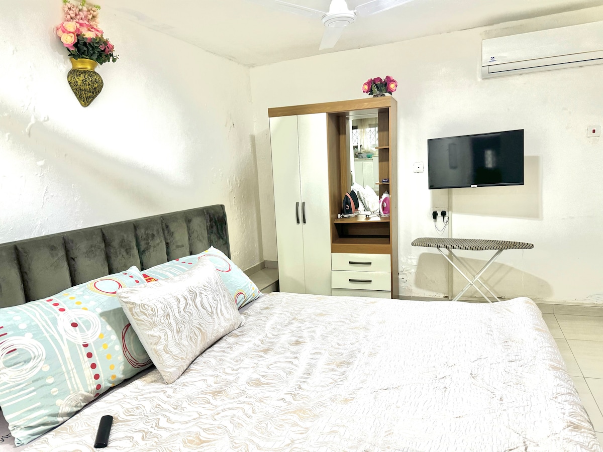 Relax with the entire family at this peaceful and secured apartment. 2-bedroom apartments that can host 4 guests. 2 guests per room. The location is easily accessible and close to West Hills Mall, Shoprite, China Mall, Melcom shopping centre, Kokrobite beach and Bojo Beach. Relax and enjoy your stay feeling at home away from home.