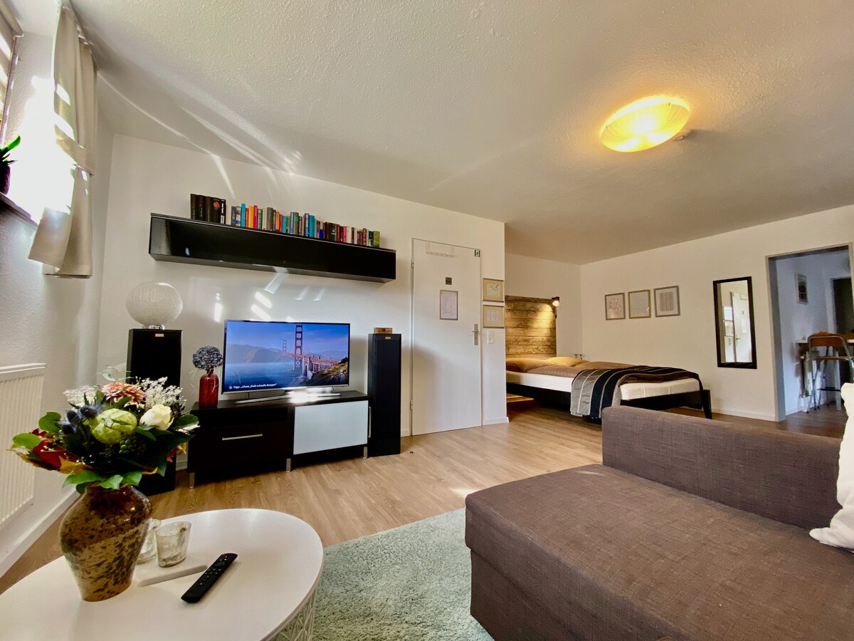 Welcome to Lörrach🌻 Renovated 1-room apartment with large windows and a balcony. A fully equipped kitchen, cozy bedrooms with plenty of storage space. Centrally located in Lörrach, just a 2-minute walk to Kaufland, DM, Aldi, and a laundromat. Train and bus connections are also a 2-5-minutes walk away. These will take you to the beautiful old town of Basel. Free Wi-Fi is available📲 Heavy suitcases? No problem, there's an elevator in the building. Free parking is also available. Have fun💛