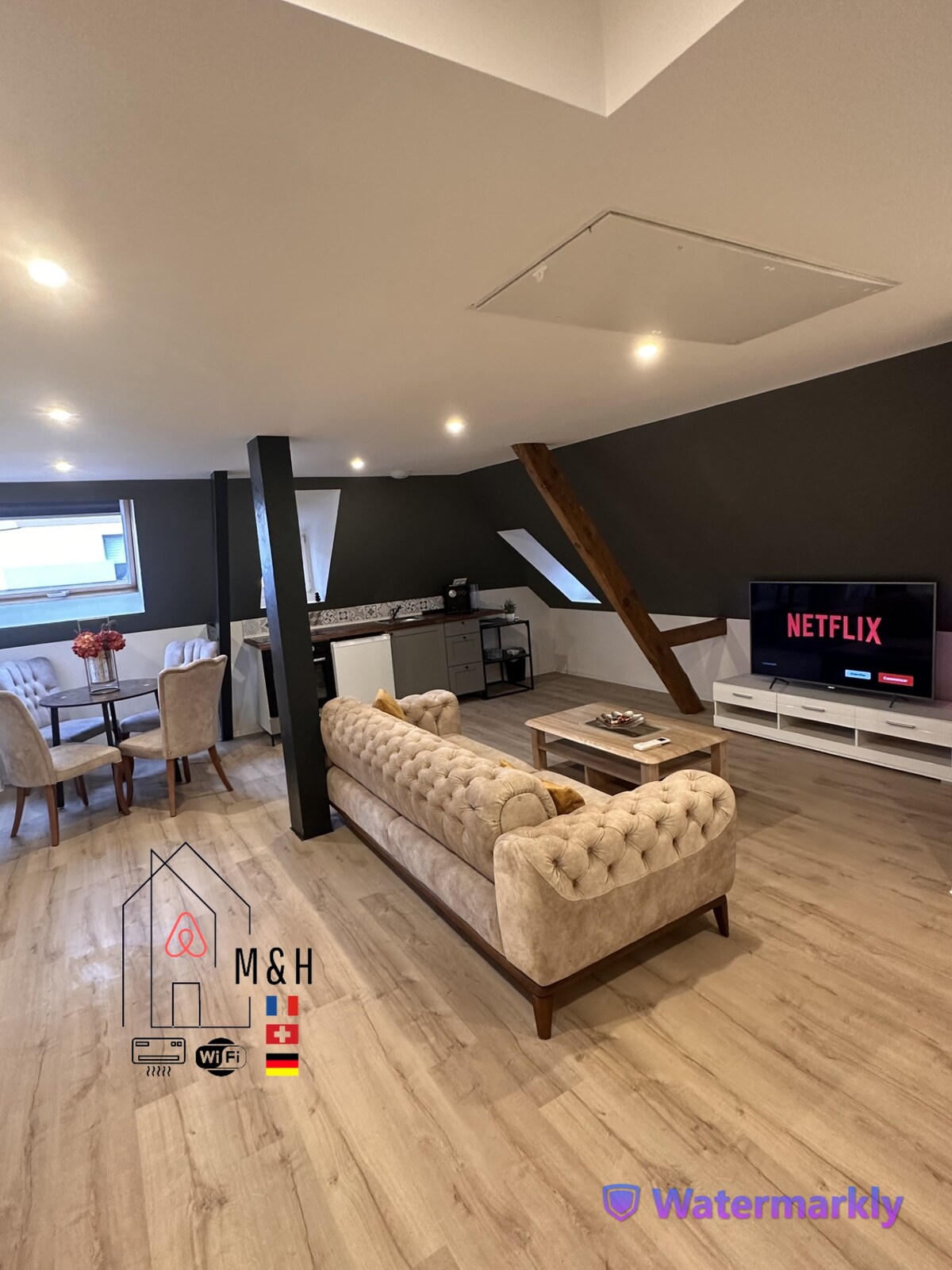 Situé à 800 mètres de Bâle🇨🇭, 5 min de l’Allemagne 🇩🇪 et de l’EuroAirport 🛫, cet appartement spacieux de 75 m² offre tout le confort pour un séjour agréable. Profitez d’un espace lumineux, entièrement équipé, à seulement 500 m du centre-ville et des transports. Que vous soyez en voyage d’affaires ou en escapade, son emplacement stratégique vous garantit un accès rapide aux attractions suisses, allemandes et locales. Parking gratuit et Wi-Fi inclus. Réservez votre séjour dès maintenant !