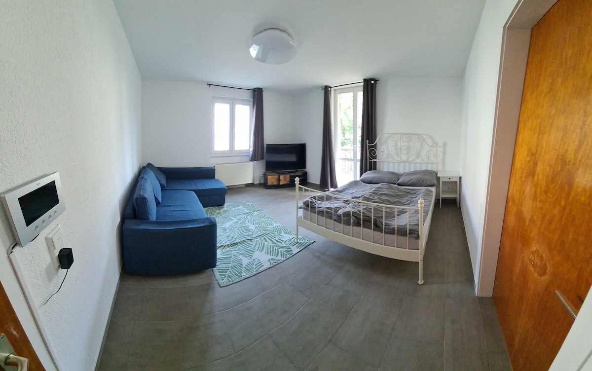 Very nice and modern furnished flat with 1 bedroom. The flat is centrally located but quiet. The train station is reachable in less than 5 minutes by foot and brings you in less then 15 minutes to Basel German Station (Near Messe Basel). Children up to 3 years do not pay.