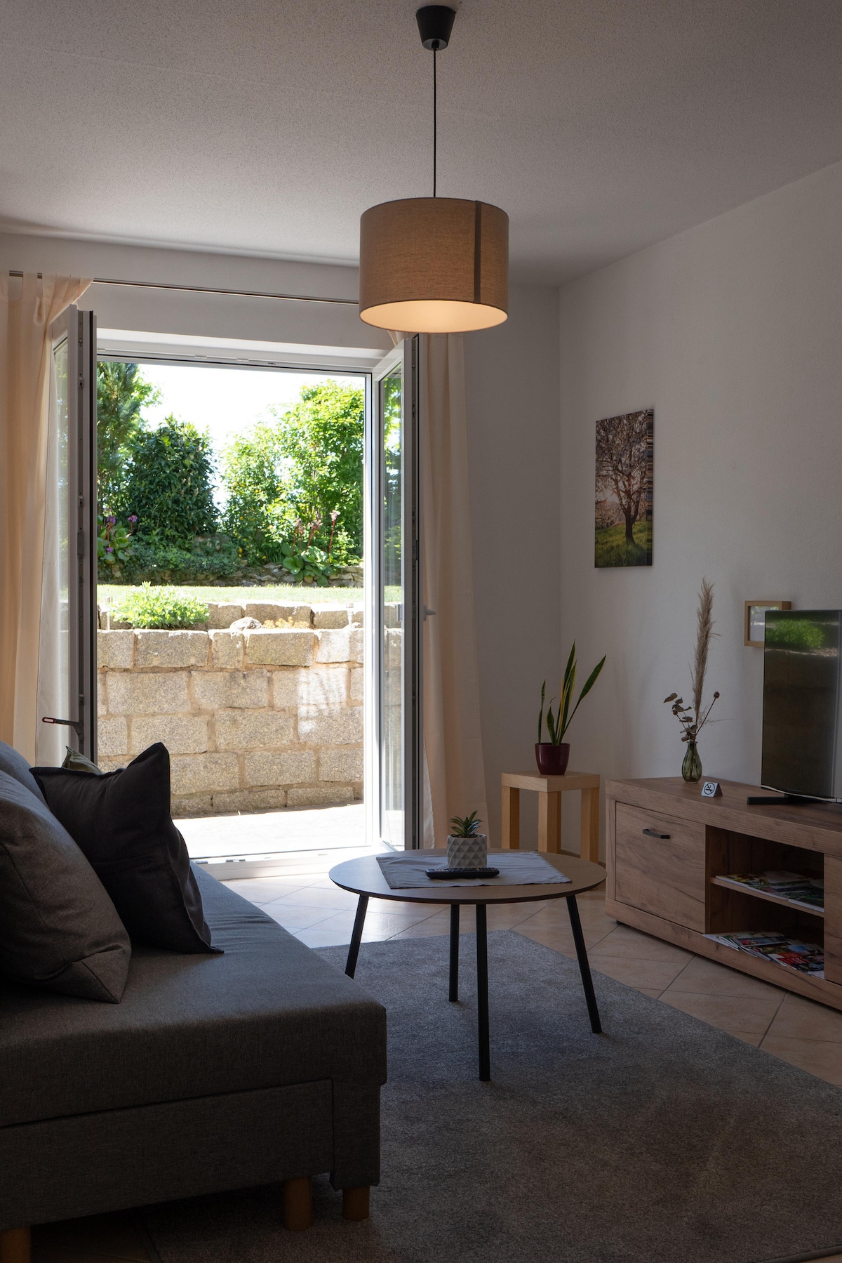 Moderne, gemütliche Ferienwohnung in Ebermannstadt am Waldrand (BJ 2022): Wohnküche mit Schlafsofa, voll ausgestattete Küche (außer Spülmaschine), Schlafzimmer, Bad, Terrasse. Ideal für Naturfreunde, mit Spielplatz in der Nähe. Einkaufsmöglichkeiten und die idyllische Innenstadt sind fußläufig erreichbar. Starten Sie direkt in Wanderabenteuer oder genießen Sie entspannte Stunden auf der Terrasse. Perfekt für einen erholsamen Urlaub in der Fränkischen Schweiz.