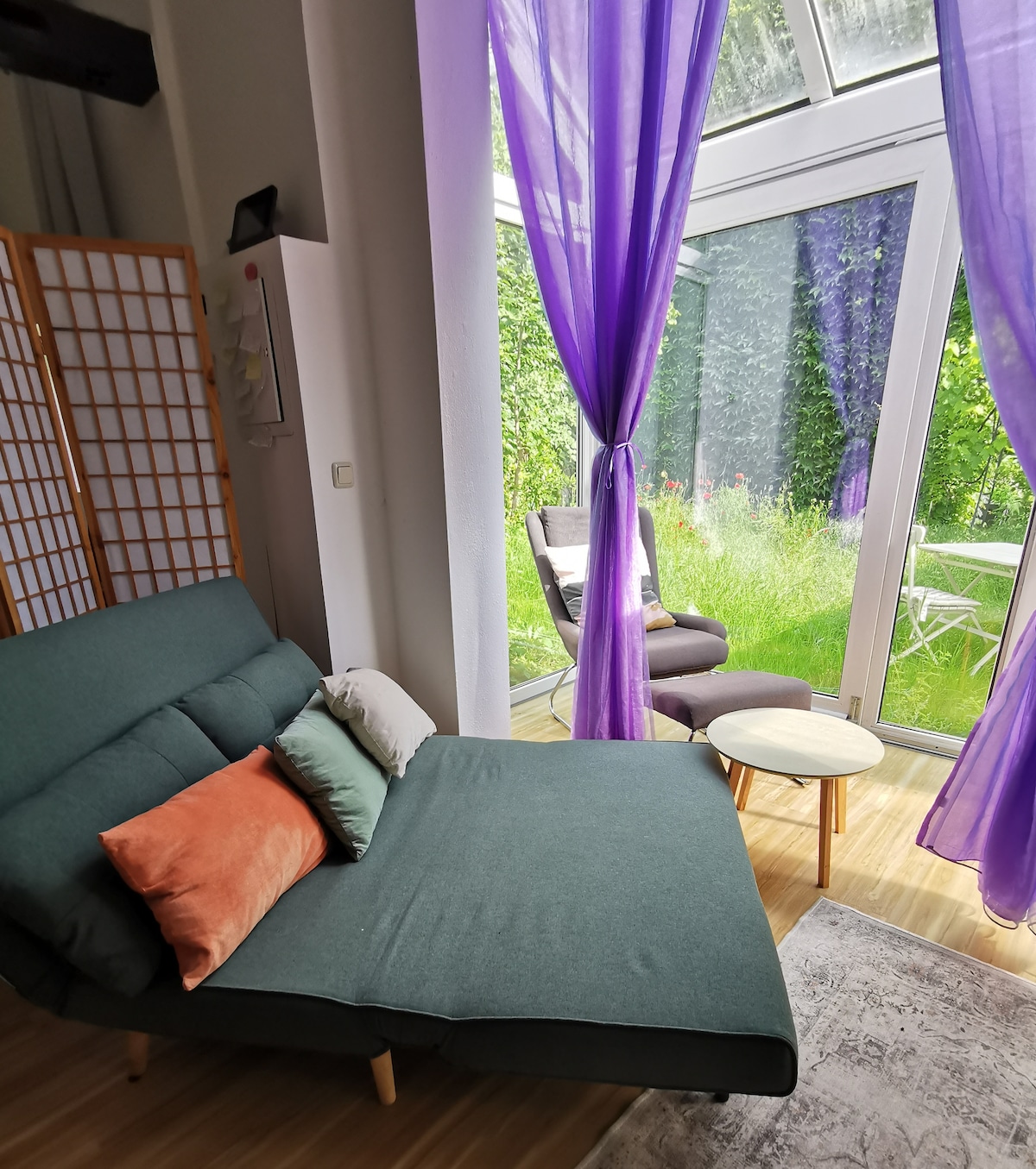 Entspann dich in dieser besonderen und liebevollen Unterkunft. Am Ortsrand von Pinzberg gelegen in einem fränkischen Obstgarten mit herrlichem Ausblick über das Wiesental. Ideal für 2 Personen, mit Bett-Sofa (130cm x 200cm) bis zu 4 Personen möglich. Die Wohnung ist offen gestaltet, somit ist der Schlafbereich nicht durch eine Tür von dem Wohnbereich getrennt.