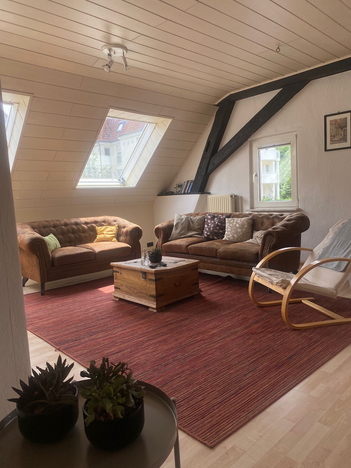 Wenn du dich bei uns wie Zuhause fühlst, dann bleibe doch mal länger. In unserem gemütlich eingerichteten Fremdenzimmer mit kleiner Küche, eigenem Bad und Bett für zwei (1,40 x 2m), bieten wir dir einen Aufenthalt mit typischem Vintage-Charme. Das Zimmer liegt in zentraler Lage mit 3 Gehminuten zum Weinheimer Marktplatz und dem Schau- und Sichtungsgarten Hermannshof. Auch der Schloßpark, das historische Gerberbachviertel und die zwei Burgen sind fußläufig erreichbar.
