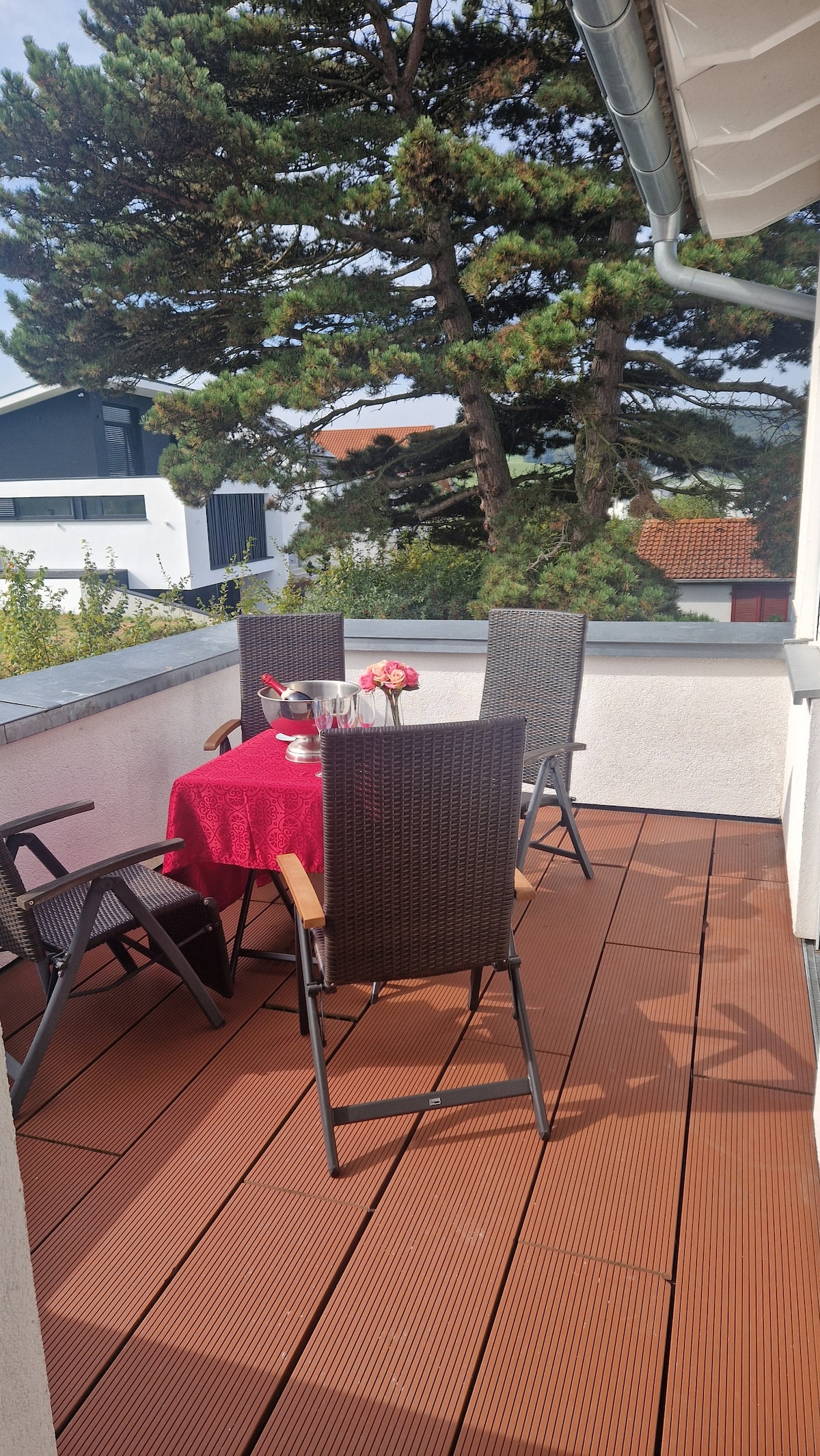 Welcome to our lovingly furnished attic apartment. The spacious apartment offers plenty of space in two sun-drenched rooms, perfect for couples, families, or business travelers. Just minutes from the idyllic Waidsee lake, a spacious, light-filled attic apartment with a balcony awaits you. Perfect for relaxing after excursions or business meetings, whether with a morning coffee or a glass of wine in the evening.