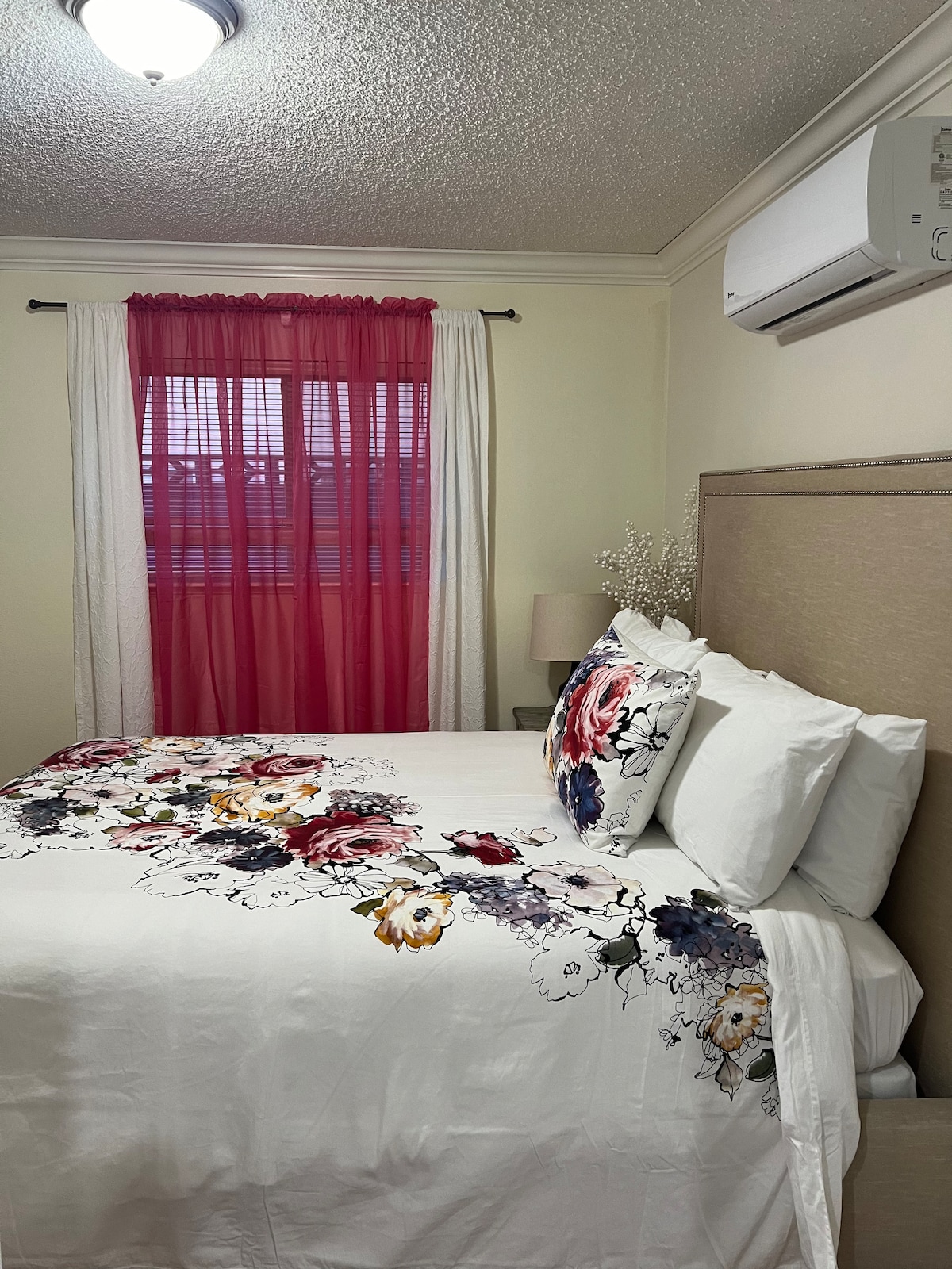 luxurious studio with private entrance, all decorated in black and white colors, has a kitchen with all kitchen accessories, queen bed, folding bed for another additional person, tv , air and heating are individual for the rest of the house since the studio has a mini split installed, it has a smoking area outside