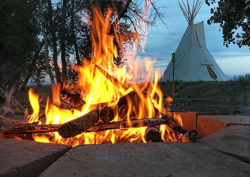 This gorgeous "Glamping" teepee is located on a working Colorado Horse Ranch. The 20 ft Teepee is pitched next to a live creek that flows trough the picturesque property and sits on a elevated wood deck. The interior is beautifully furnished with a queen sized bed, fire pit, coffee maker, small gas grill and electric lanterns for light. Other items are provided to make your experience comfortable, relaxing and memorable.