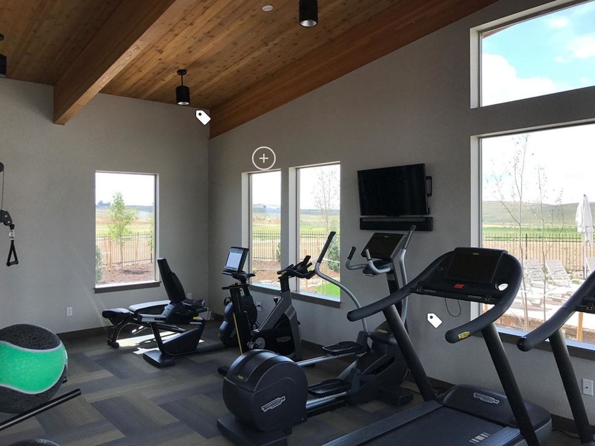 Perfect for getaways, family visits, extended stays and exploring all NoCO has to offer. This private retreat has: Bedroom w/ king, full bathroom, open living area, fully equipped kitchen & laundry, central A/C, exercise equipment, electric space heaters, computer, gigabit Internet, keyless entry, smart TVs, computer, hot drink bar, entertainment ,covered deck with fire pit, shaded patio with ample seating, griddle, grill & smoker, indoor sauna, private hot tub & seasonal plunge tank
