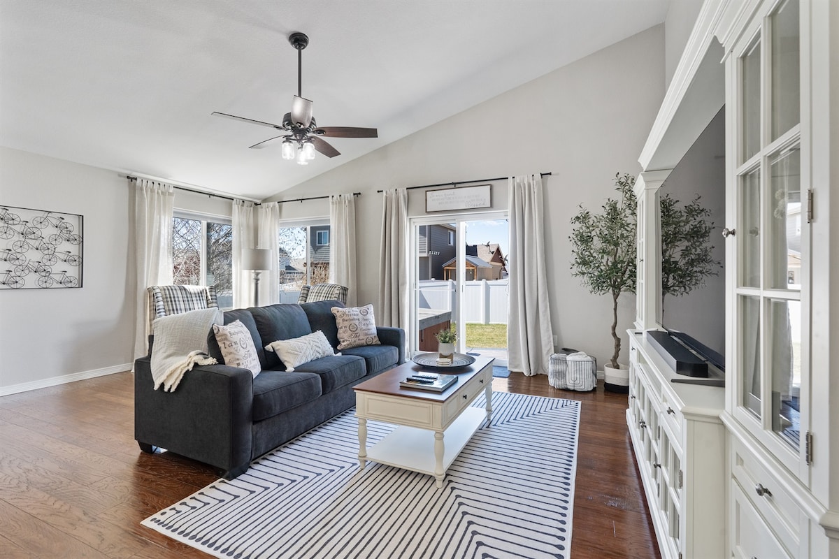This West Greeley home is the perfect blend of fun and relaxation. Our home sleeps 10 comfortably and is tastefully furnished with cozy couches, nice comfy memory foam mattresses, games , fully functional kitchen with everything you’ll need to enjoy cooking and meals together, outdoor gathering area, hot tub and game room. It really is a home away from home. Located 1 block from the park, and a 1 min. drive to Centerplace (shopping, restaurants, entertainment) you’ll be close to everything.