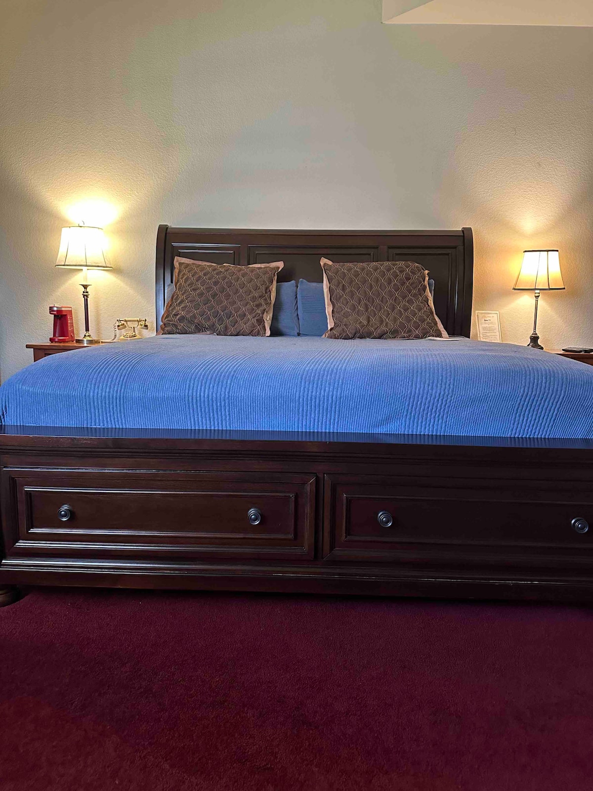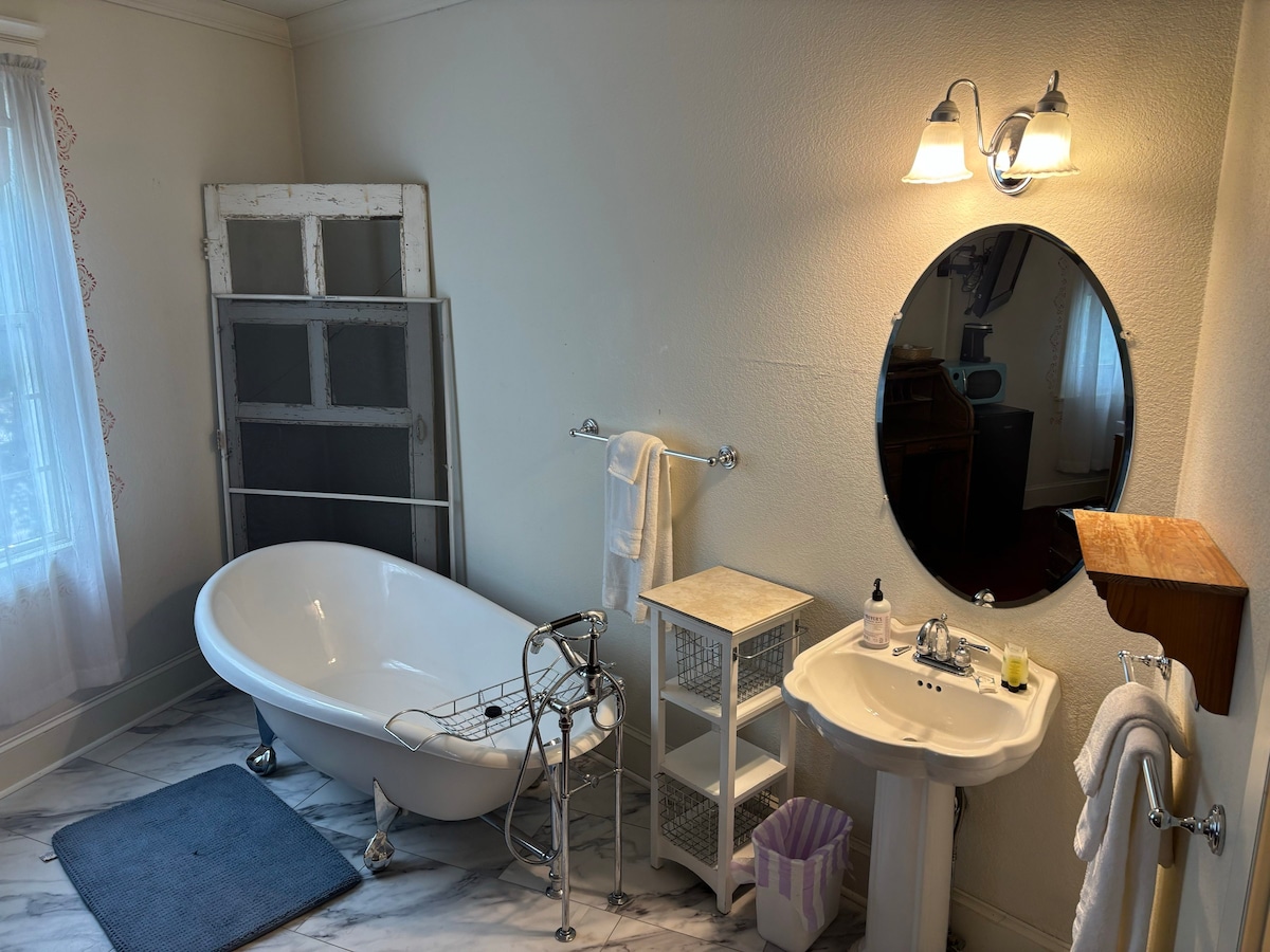 The Sterling Room comes with a Queen size bed.The private en-suite bathroom has a shower and a separate soaking tub. The Sterling room has individual climate control, high-speed wireless internet access, and telephone, alarm clock, radio, and hairdryer. Please enjoy Lafayette’s Creperie in the morning, which includes a 20% discount for guests.