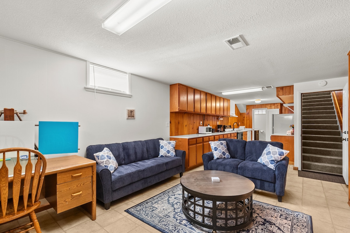 2 blocks from UNC Campus. 4 blocks from High Brau Taphouse 1 Mile to Downtown Greeley (Rio Grande Mexican Restaurant, Patricks Irish Pub, Kress Cinema & Lounge, BRIX Taphouse, Ice Haus, etc.) This lower level suite has 3 queen beds, 1 couch, 2 roll away beds, 2 air mattresses, 1 pack n play crib Outdoor bike rack. 2 x-large bean bags!!