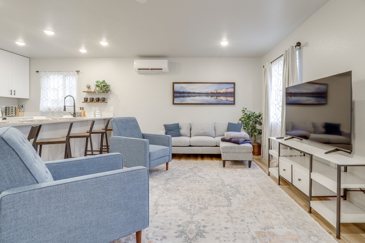 This stylish townhome is comfortable and inviting with everything you need for a relaxing stay. It features a cozy living area with an updated kitchen and two private bedrooms. It also features a large, shared backyard and a private back patio with string lights and a gas grill. Get outside and enjoy the beautiful Colorado sunshine, explore the local breweries and hit the Farmers Market. Then rejuvenate yourself by taking a hot shower and sinking into bed after a full day of exploring Colorado!