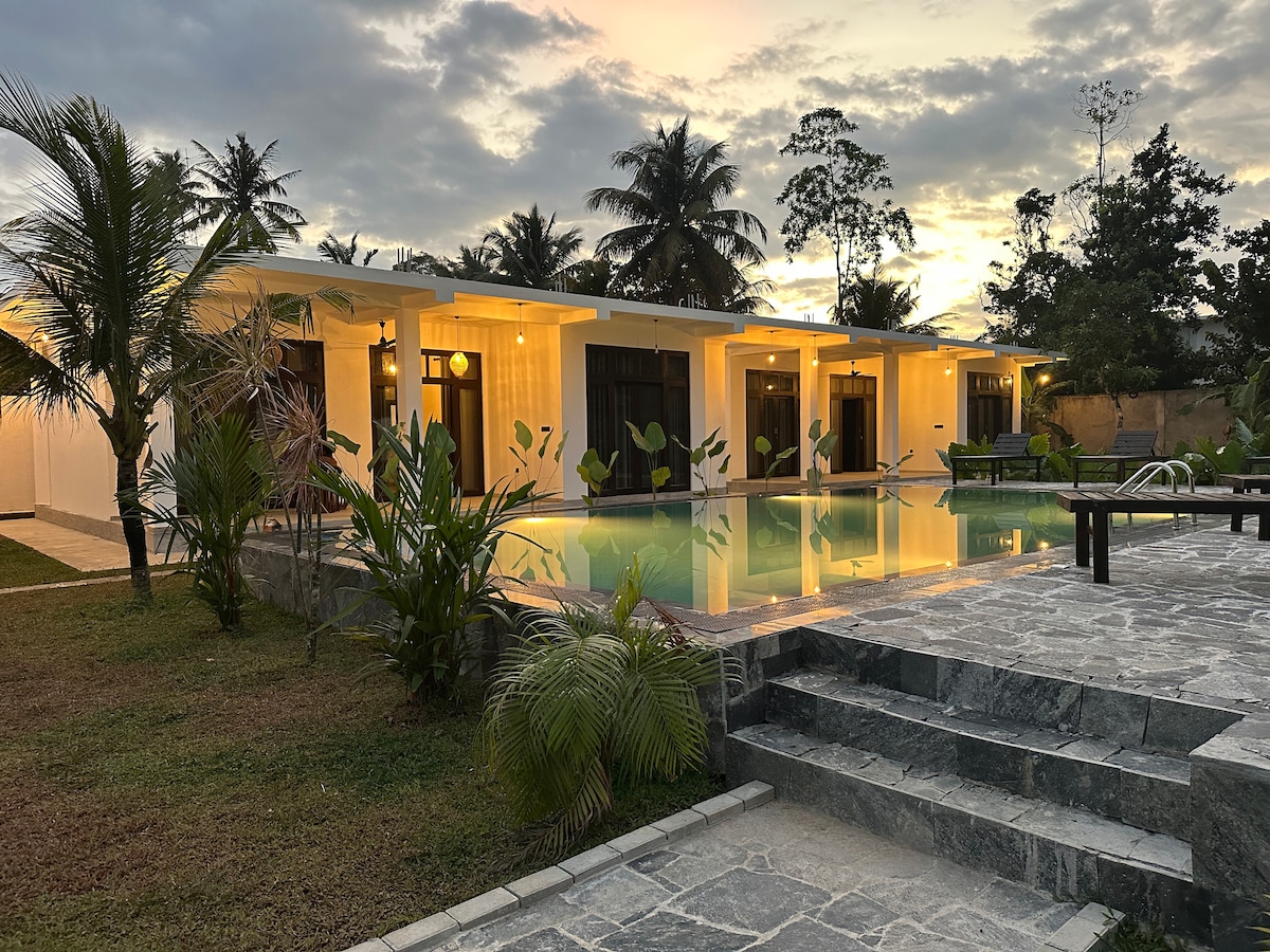 Luxurious Villa with 4 beautiful suites of over 375 sqft Located in the southern province of Sri Lanka, near Fort Galle and beautiful golden sandy beaches King size bed, AC inverter, fan, free WiFi, satellite TV, minibar Include a delicious continental breakfast Beautiful view of all bedrooms and living room Large swimming pool of over 50 'by 27' with Jacuzzi Very large tropical garden Free garage, laundry available. The staff speaks English is at your service throughout the day