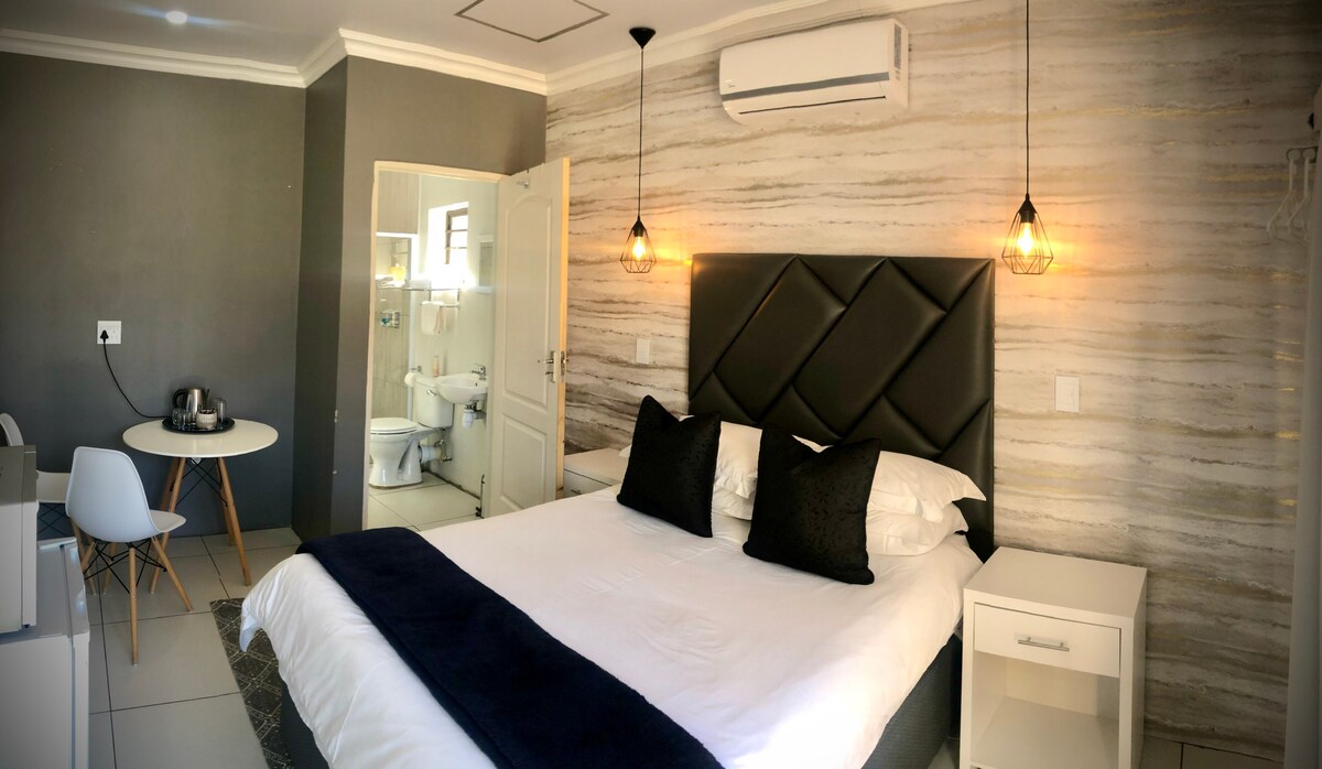 Modern & spacious guest house units situated in the heart of the Goldfields. Garden suite has an open plan kitchen/living room with, wifi, bathroom with shower and secure parking, perfect stopover on route from Cape Town or Johannesburg.