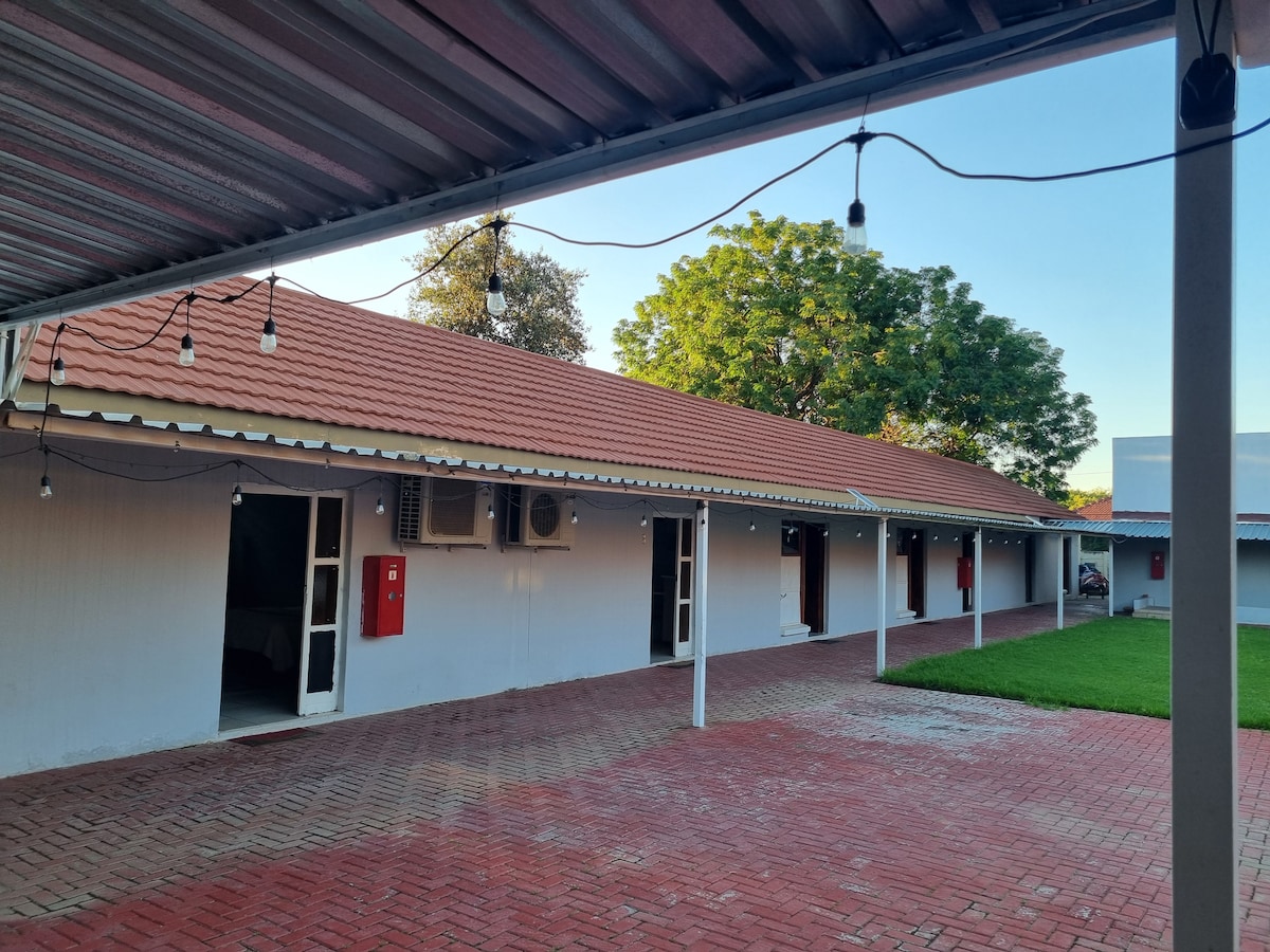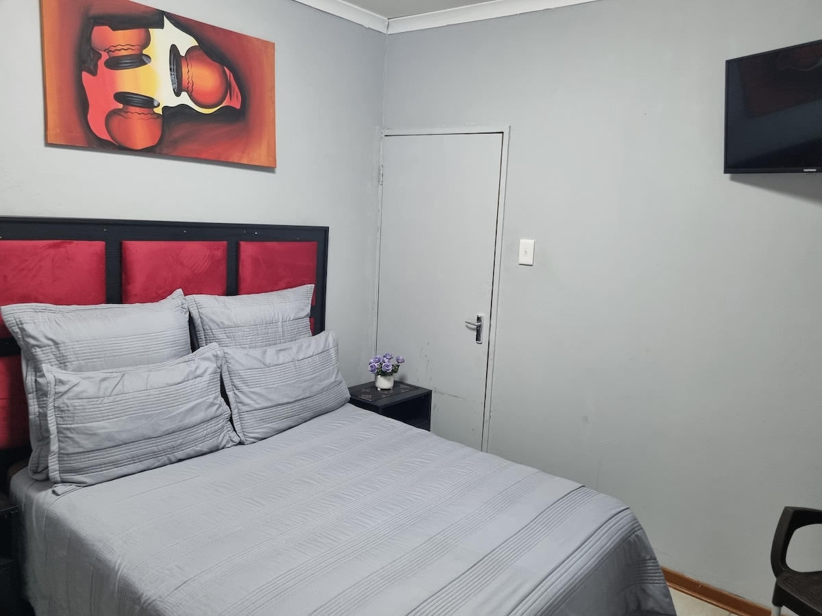 Forget your worries in this spacious and serene space. It's a peaceful place where luxury meets affordability. Your comfort is our priority with free Wi-Fi, dstv, beautiful outdoor space, private carport parking, self catering. We find pride giving you a safe stay with us