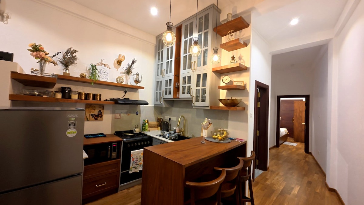 Enjoy a stylish stay in this centrally located, design-led 1-BR apartment in Colombo 4 (Bambalapitiya). Steps from Galle Road and a short walk to the beach, with easy access to transport, cafés, restaurants, and supermarkets. Designed for comfort with AC bedroom, balcony, workspace and fast Wi-Fi powered by unlimited 4G, fully equipped pantry and washing machine for short or longer stays, with all utilities included, no hidden costs. Ideal for expats, business travellers and digital nomads.