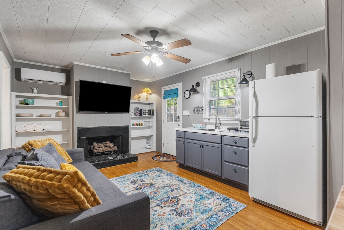Right in the heart of Travelers Rest! Escape to this unique, romantic retreat featuring silky 100% bamboo sheets, a cozy UGG comforter, and a sparkling starlit ceiling. Our private guest home offers seclusion while being just 3 minutes from downtown TR's local shops and eateries. Close to Greenville/15min, Asheville/1hr, and Hendersonville/30min. Perfect for engagements, honeymoons, or as a creative photography/office space! Your unforgettable getaway starts here!✨